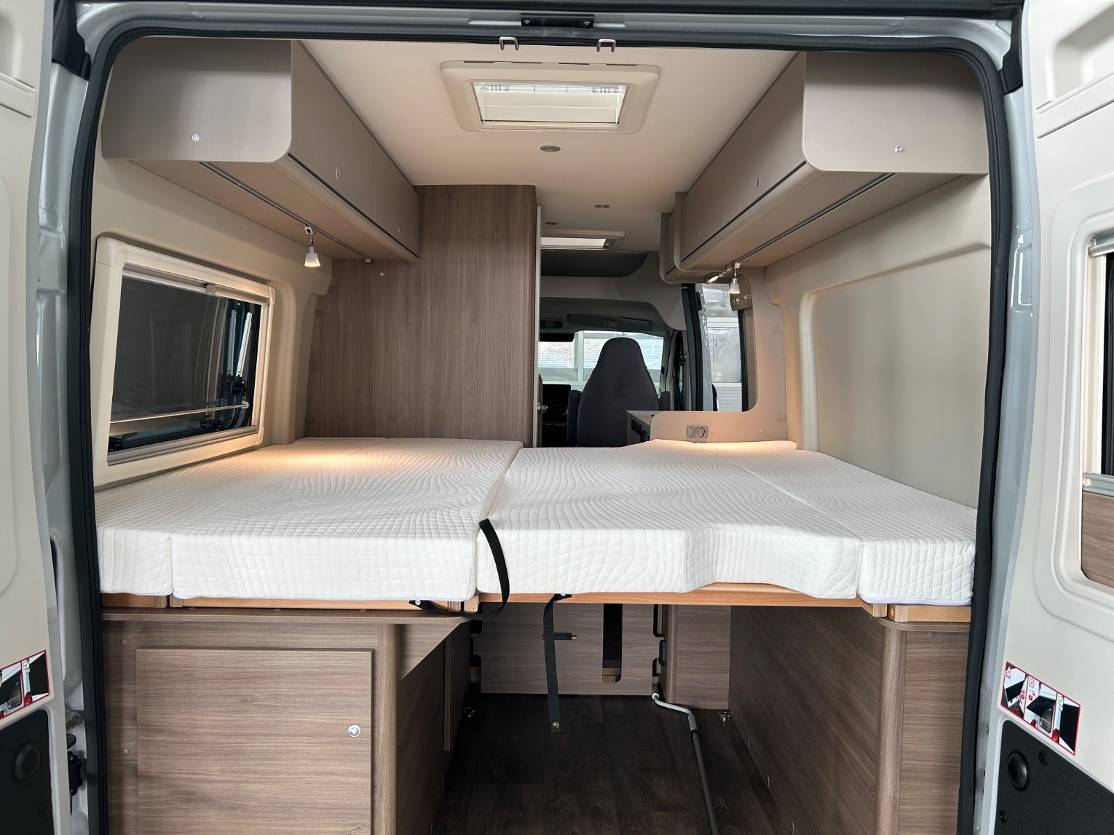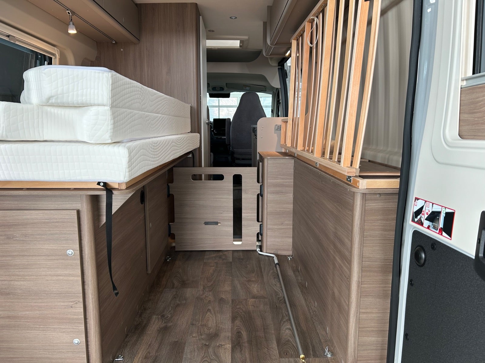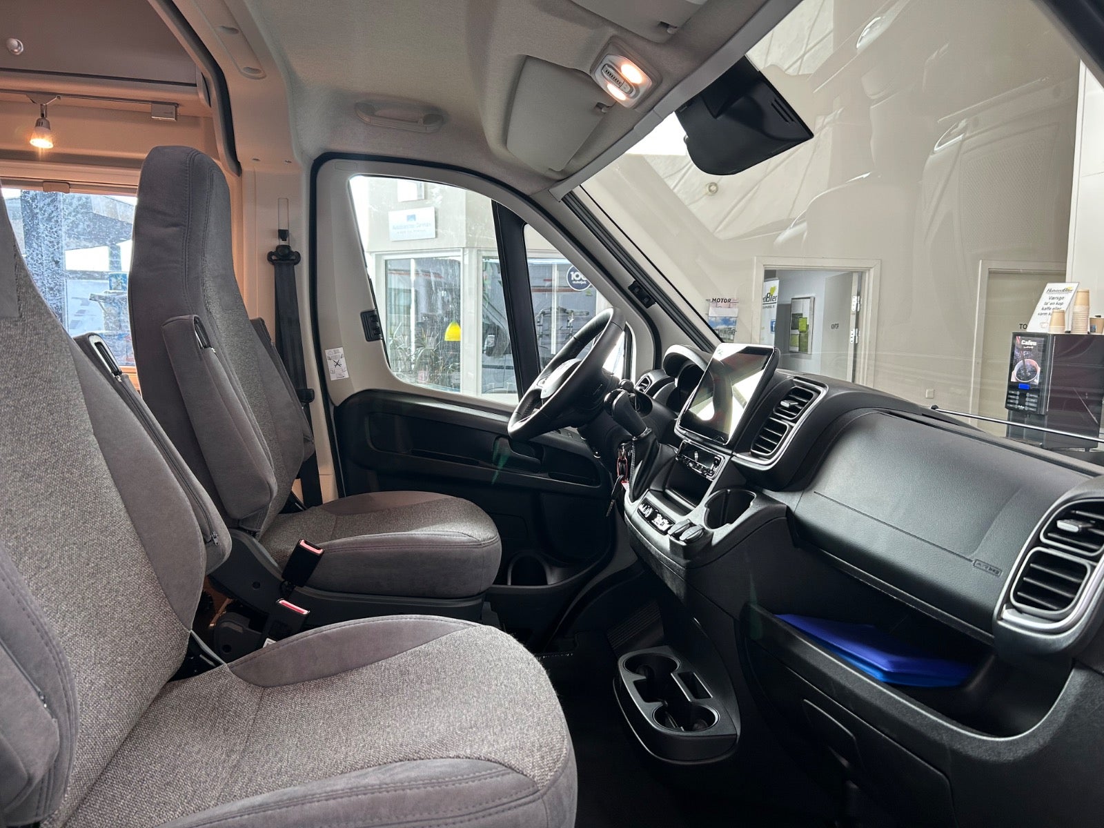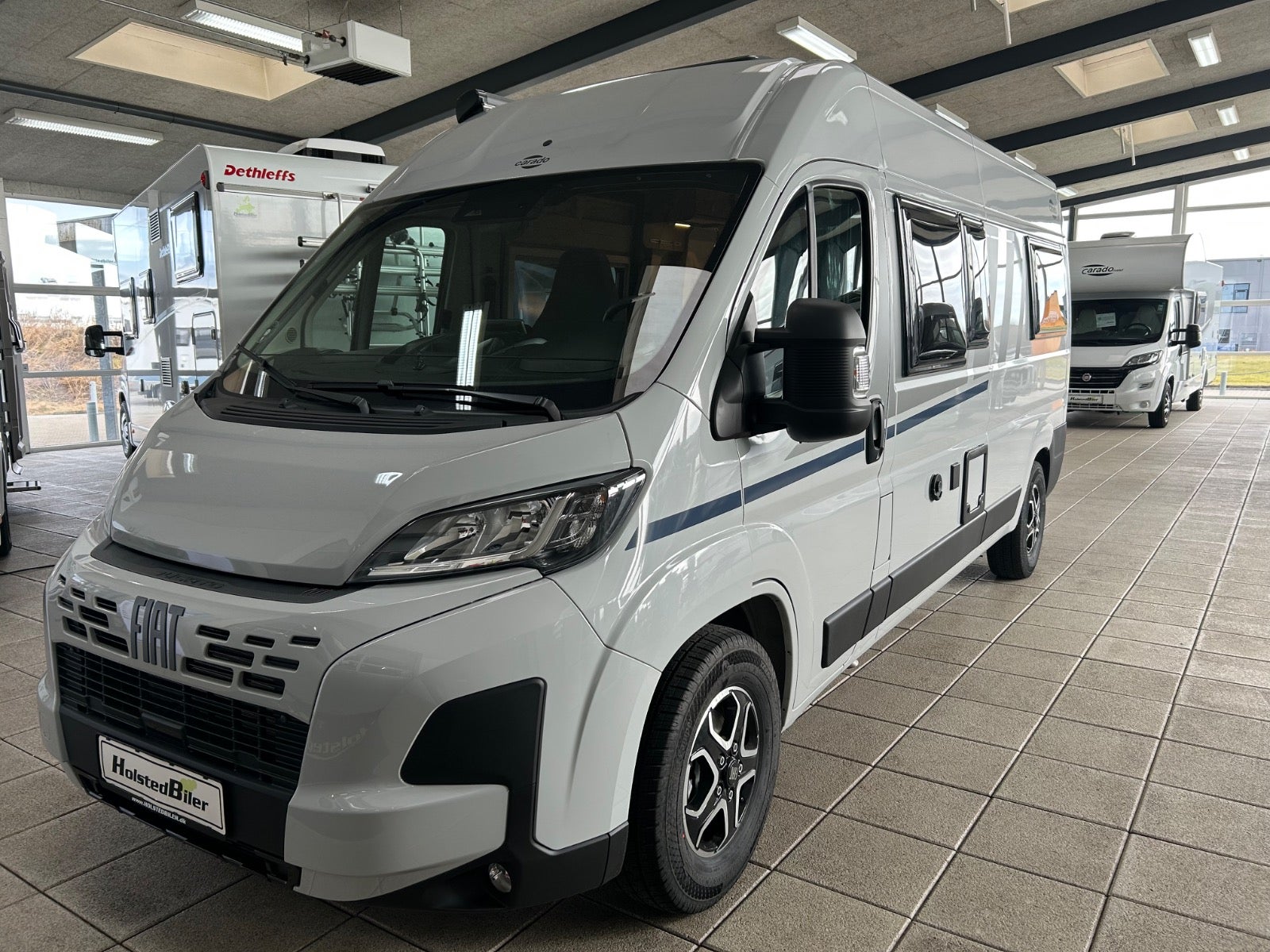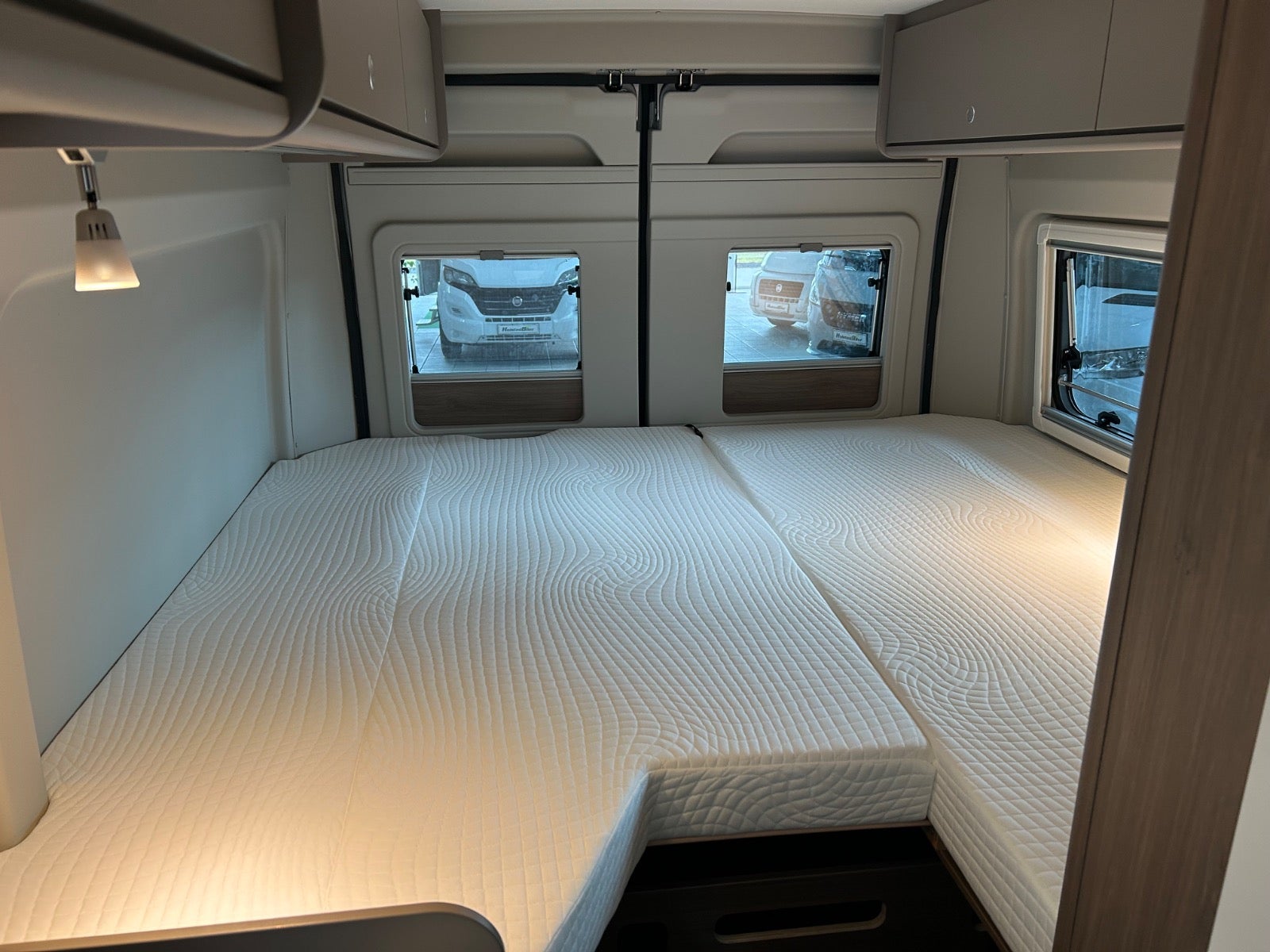 2 enkelsenge og KUN 6 meter lang. MASSER af udstyr f.eks.: Fiat 3,5t 140 HK automatgear Euro 6, Farve Expedition grå, Radio med antenne i sidespejl, Trærist til brusebund, 12 V TV-forberedelse inkl. fladskærmsholder, Solcelleanlæg 100 Watt inkl. MPPT Regulator, Co-Driver pakke: ACC med stop & go, Vejbanecentrering, Trafikpropsassitent, Bremseassistent med fodgængergenkendelse, Regn- og lyssensor, Vognbaneassistent, Vejskiltegenkendelse, Træthedsgenkendelse, Intelligent hastighedsassistent. Digital pakke: Automatisk klimaanlæg i førerhuset med pollenfilter, Trådløs oplader til smartphone, 10" Radio og navigationssystem (DAB+), 7“ digital TFT farve display, Bakspejlskamera med dynamiske gitterlinjer. Chassis pakke: Elektrisk klapbare spejle, Parkeringssensor bag, Dødvinkelassistent,Elektrisk parkeringsbremse. Alu-fælge. Måtter i førerhus.