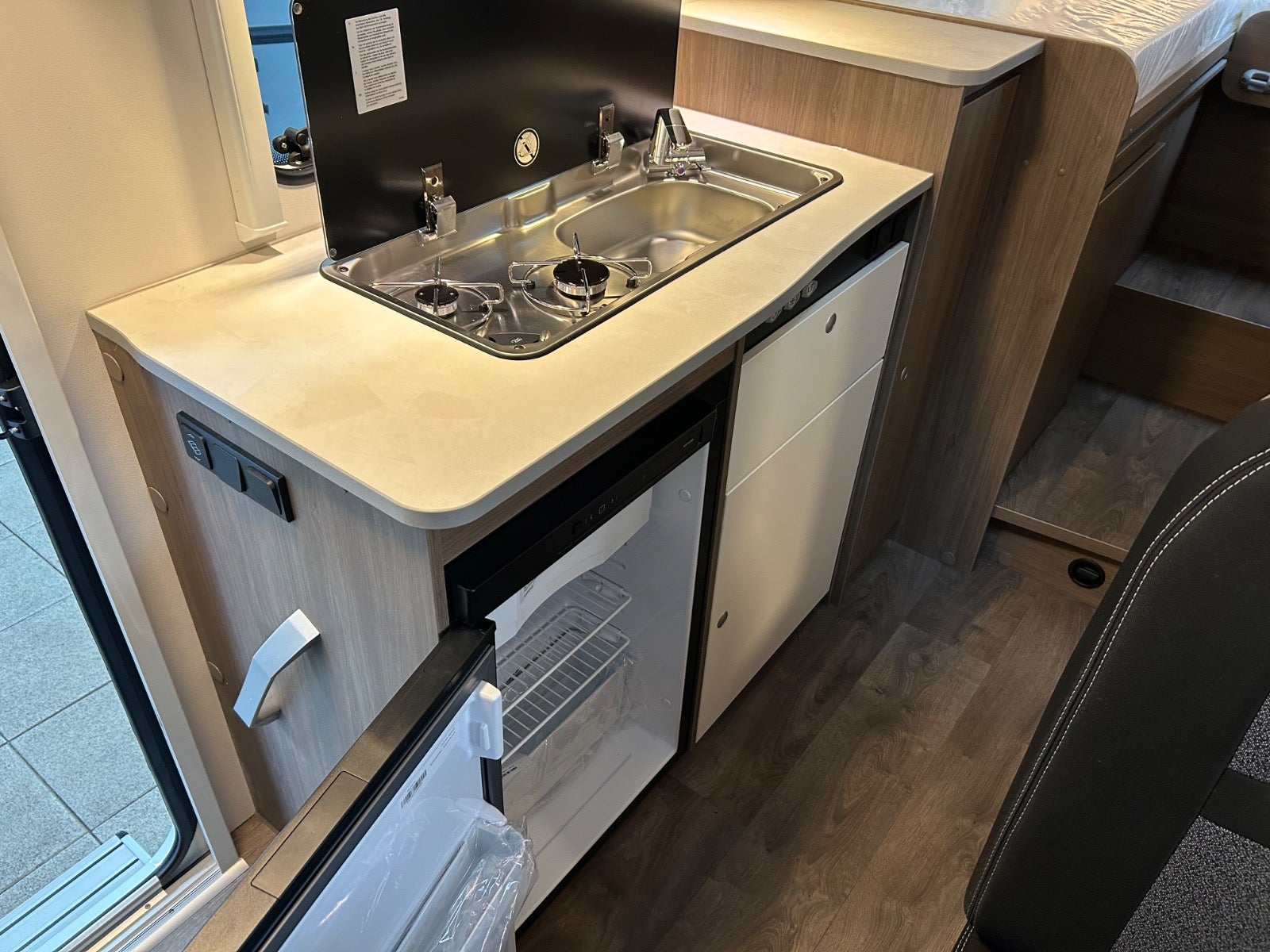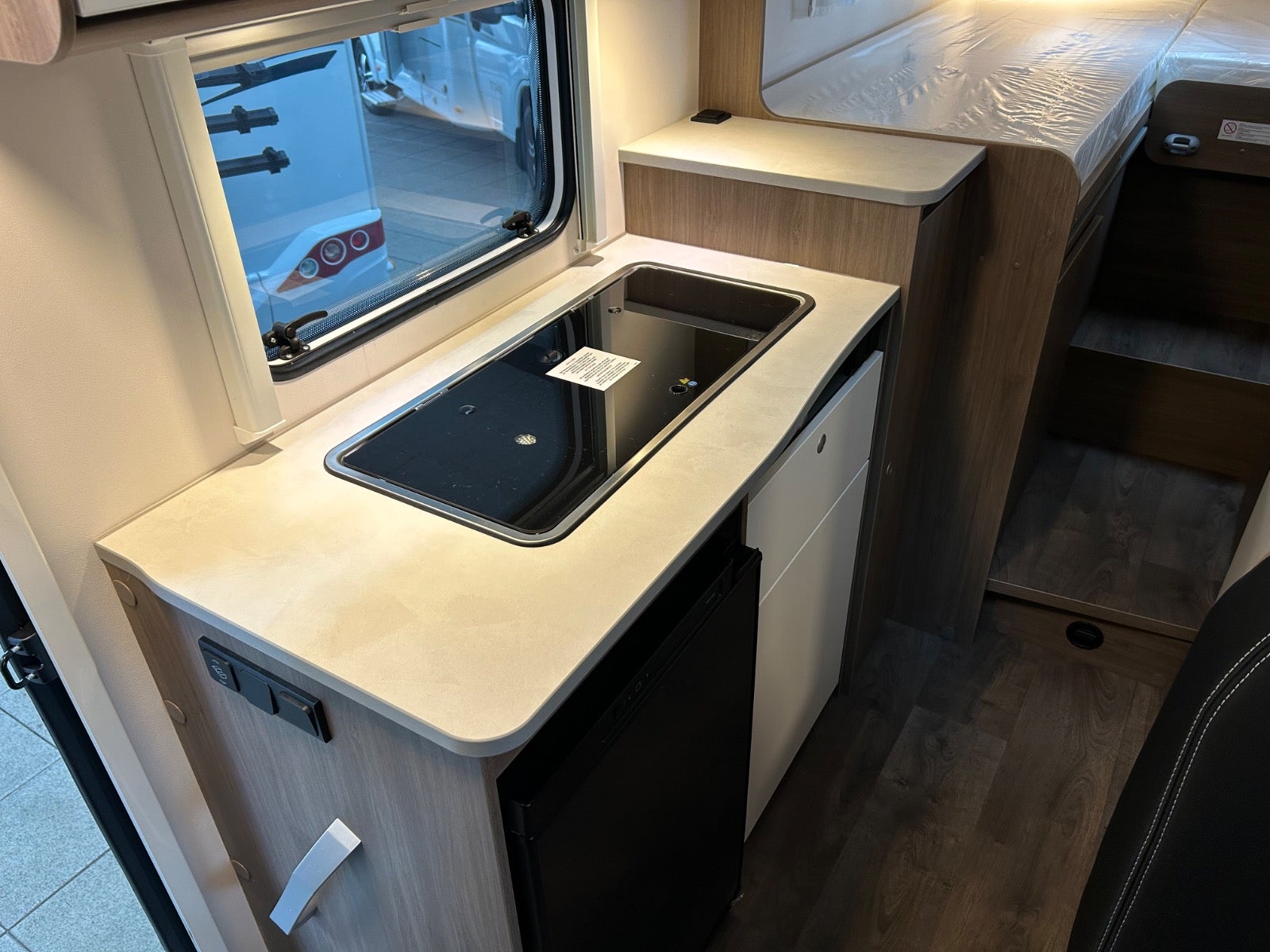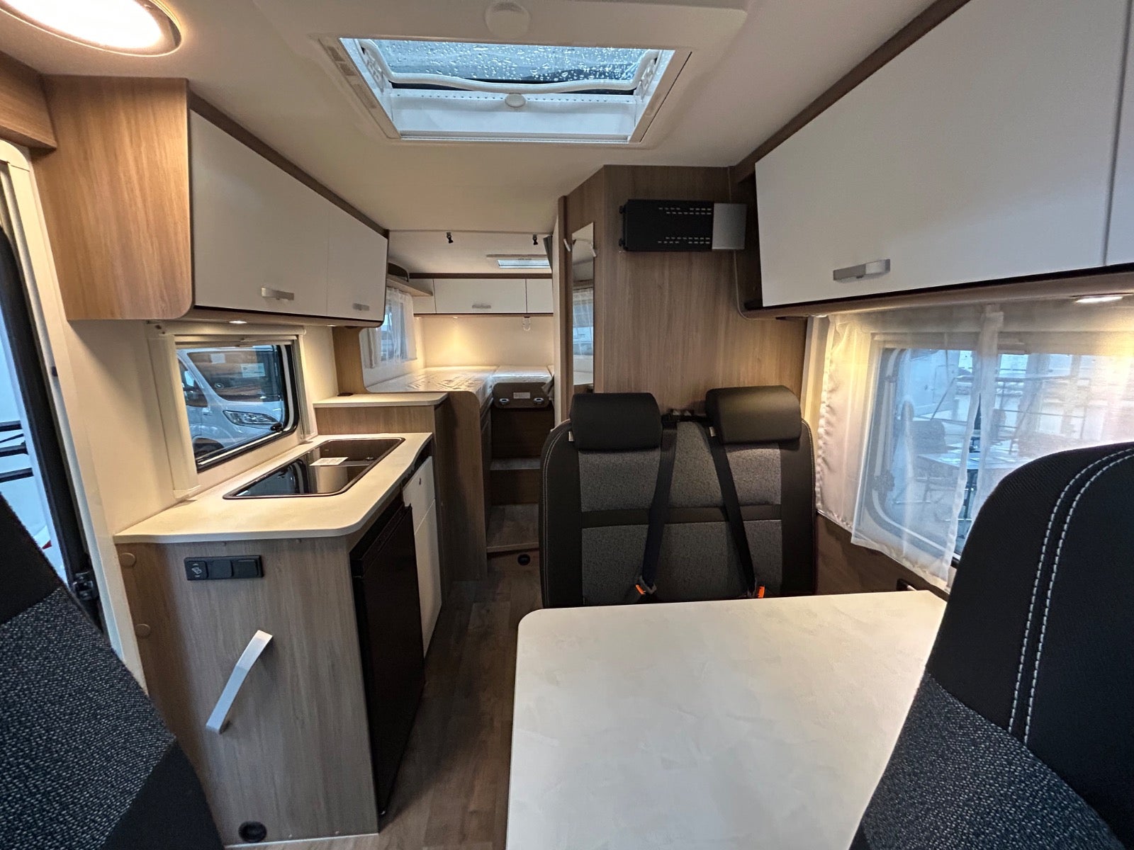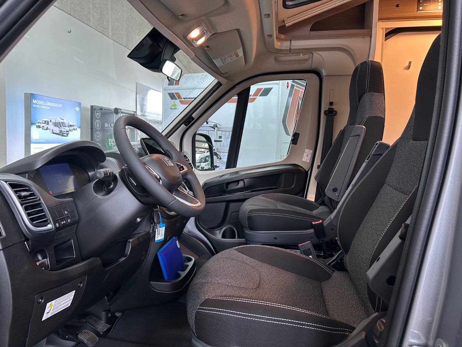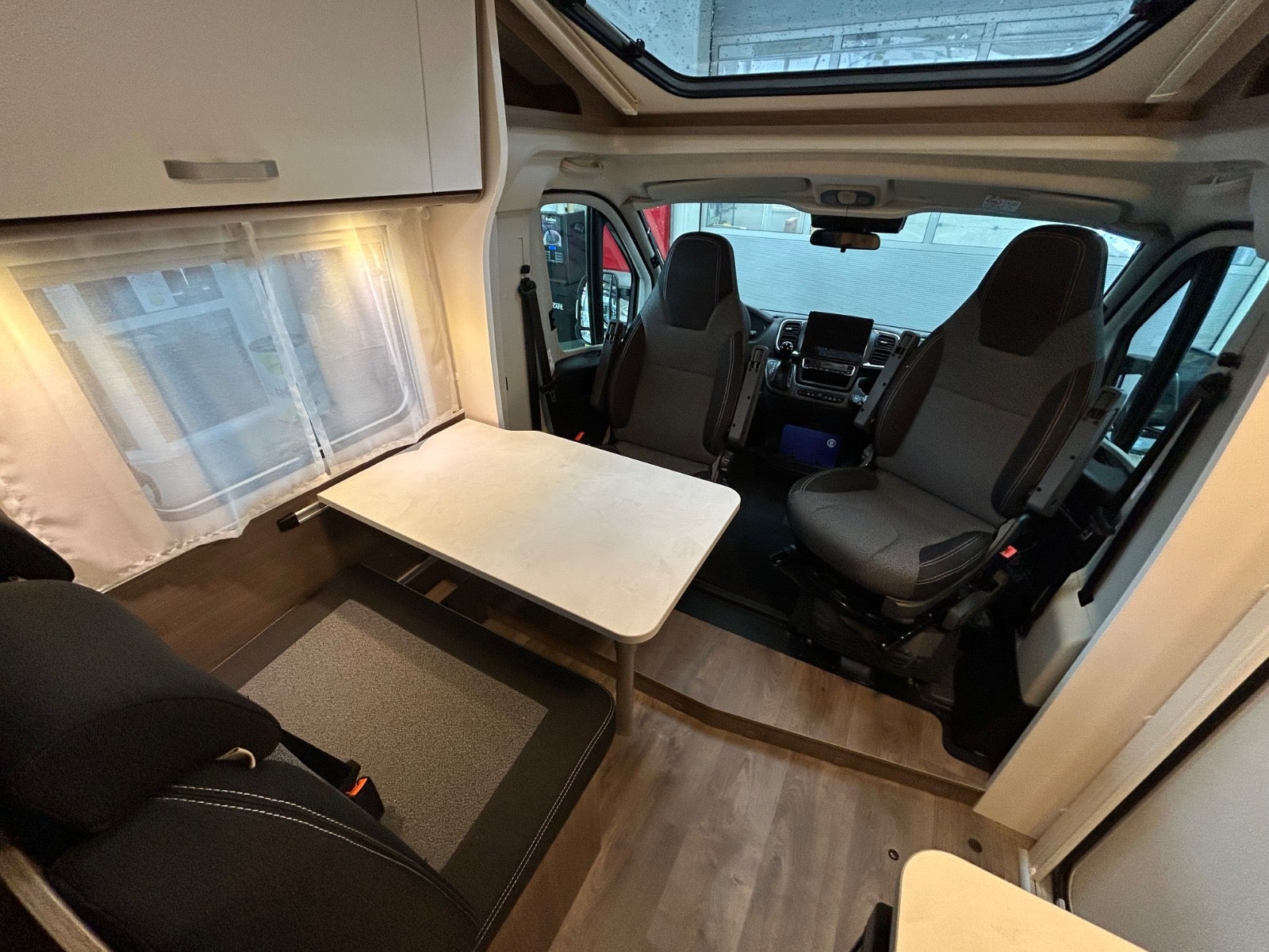 farver, Basis pakke, Chassisfarve Artense grå metallic, Specialfarve til overskabslåger, Pro+ stafferinger, Foldbar mørklægning i førerhus, 2. serviceluge, Isoleret spildevandstank, Vindue over førerhuset.