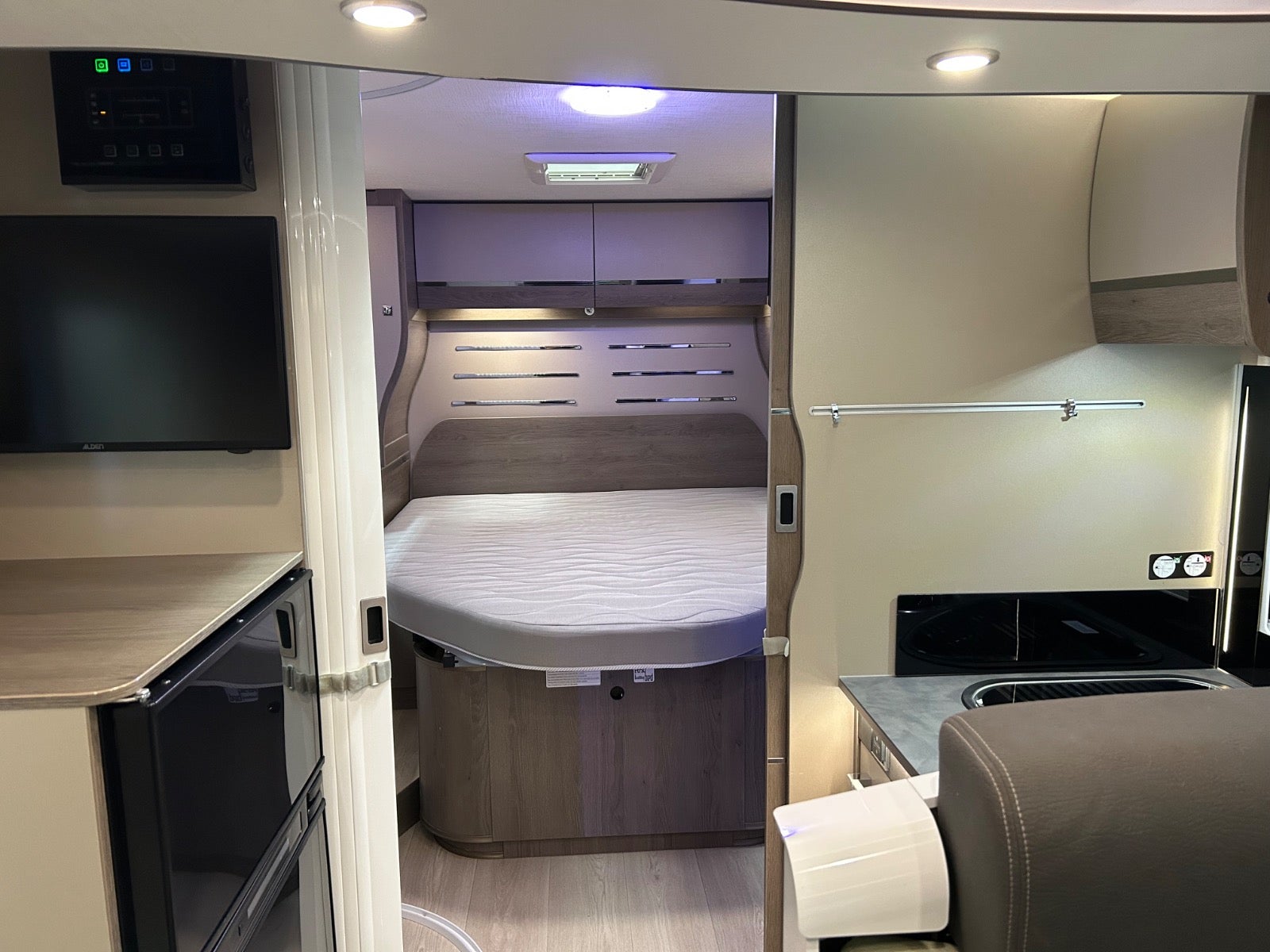 Automatgear og 170 HK - 5 selepladser - kun km 45000. Stor queensbed i bag med wc og separat brusekabine, køkken med plads, siddegruppe til 5 personer og elektrisk hæve/sænkeseng til 2, dieselvarme og varmt vand, solcelle, plissegardiner, TV på vendbar beslag, markise, kørecomputer, multifunktionsrat, højdejust. forsæder, læderrat, stofindtræk, el-sidespejle m/varme, tågelygter, automatgear, fjernb. centrallås, udv. temp. måler, el-ruder, db. airbags, esp, bakkamera, antispin.Længde 699 Bredde 230 højde 289.