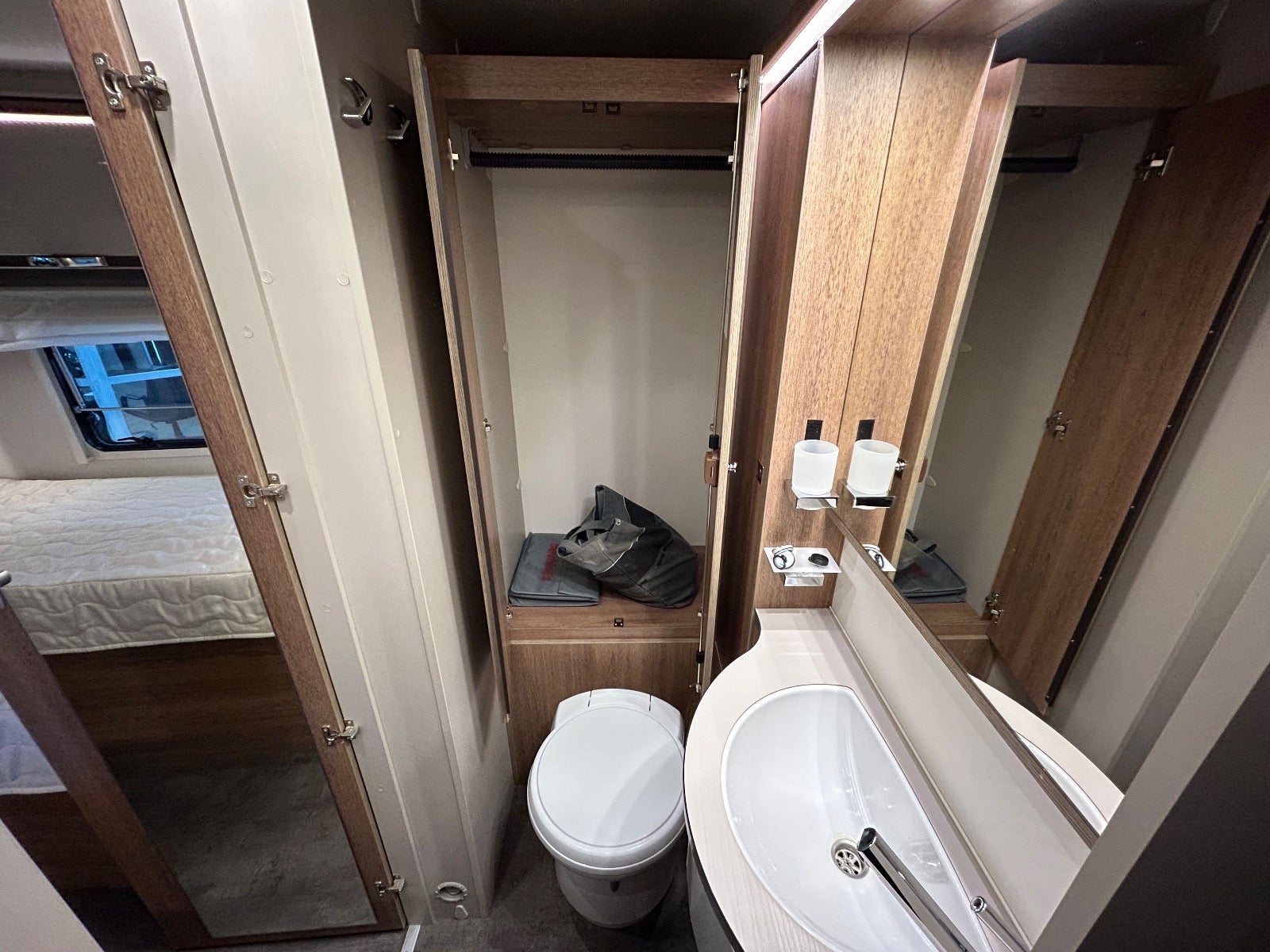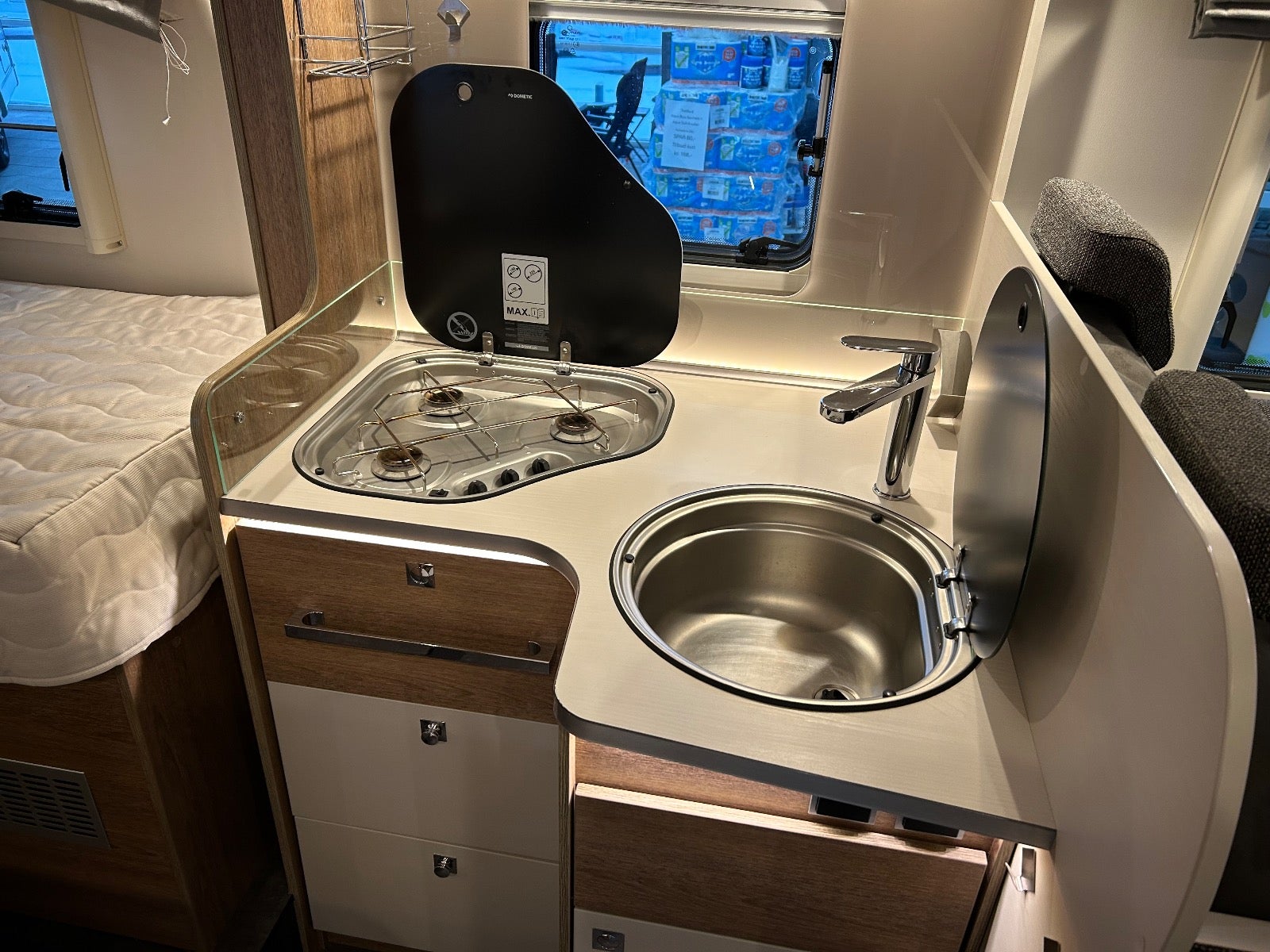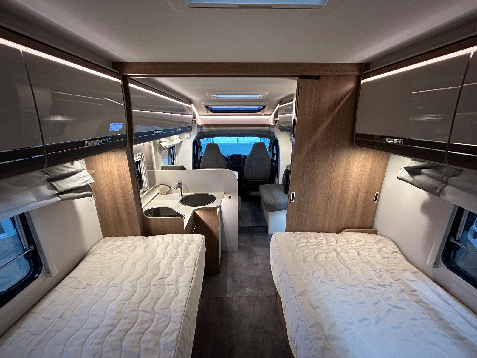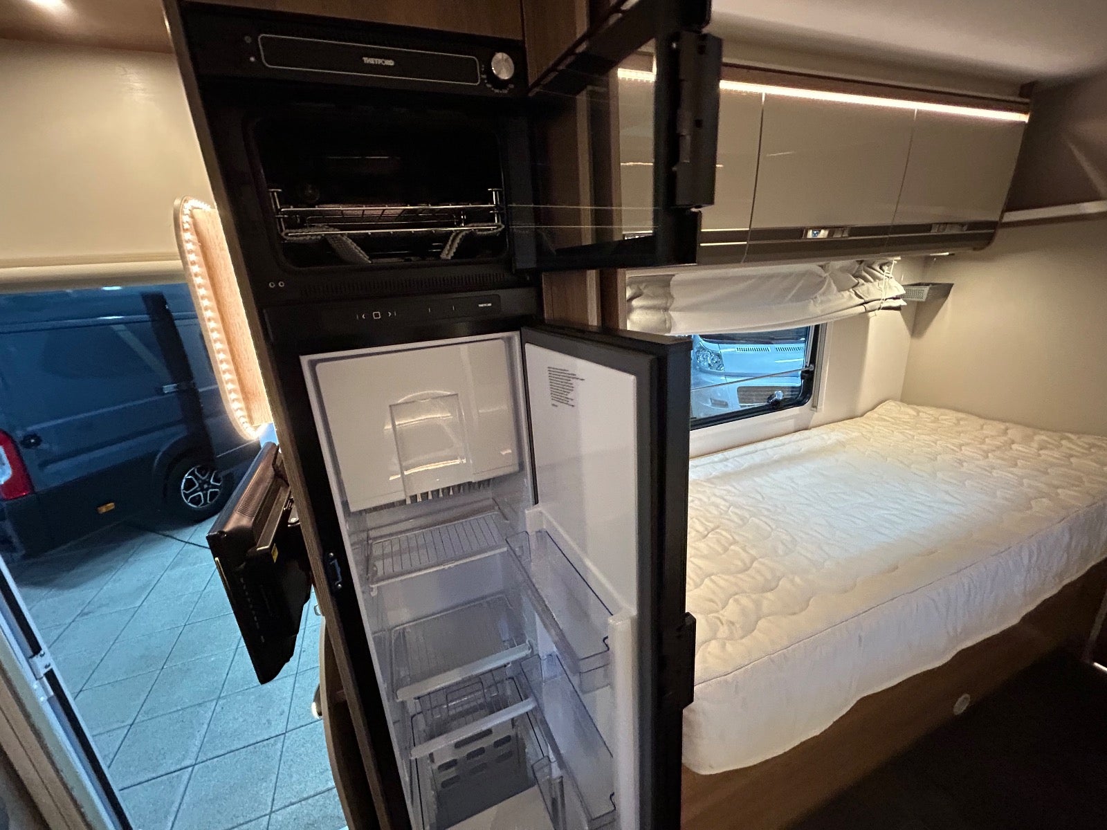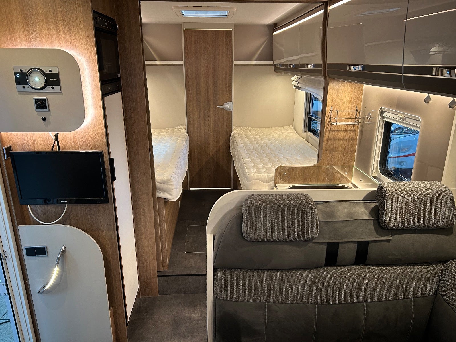 9 trins automatgear, kørecomputer, multifunktionsrat, højdejust. forsæder, automatgear, udv. temp. måler, esp, læderrat, led kørelys, solceller, fjernb. centrallås, fartpilot, navigation, stofindtræk, 16" alufælge, el-sidespejle, 2 zone klima, el-ruder, dab radio, håndfrit til mobil, bakkamera, 4 airbags, servo, 1 ejer, ikke ryger, nysynet, service ok, diesel partikel filter, truma gasblæsevarme, automatisk køl/fryseskab, gas ovn, 200 w solceller, plissegardiner i for, god indretning 2 enkeltsenge over garagen i mitten af vognen, wc/bad i bagenden, vinkelkøkken, el sænkbar cykelholder til 2, totalvægt 3500, Euro 6, meget pæn og velholdt,længde 7381 bredde 2325 højde 2905
