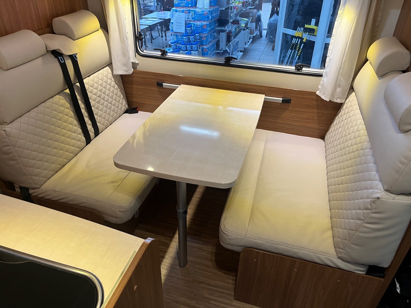 Godkendt med 6 sæder og 6 seler, kørecomputer, læderindtræk, højdejust. forsæder, træk, automatgear, aircondition, udv. temp. måler, musikstreaming via bluetooth, airbag, esp, læderrat, 6 personers, led kørelys, solceller, fjernb. centrallås, fartpilot, 16" alufælge, el-ruder, håndfrit til mobil, apple carplay, usb-a tilslutning, bakkamera, abs, antispin, esp, servo, ikke ryger, lev. nysynet, service ok, træk til 1900 kg, diesel partikel filter, stor garage med 2 låger / døre, cykelholder til 4, duo gas control, gasudtag til grill, 200 w solceller, 1 x lithium batteri, 2000w inverter i alle stikkontakter, antenne med internet router, elektrisk trin, markise, tv, fuldaut. klima i bag, gasalarm, bruserudtag, ekstra sikkerhedslås på døre og garage, støtteben i bag, tv, plisse gardiner i for, myggenet i døren, dejlig stor brusekabine og toilet, sog udluftning på wc, plads til 2x11 kg gasflasker, gaskogefelt med 3 blus, køleskab / fryser, stor dobbeltseng i bag, seng over forsæder (2200 x 1600) opredning ved bordet, længde 7, 250 - bredde 2, 320 - højde 3, 100, totalvægt 3500 kg, euro 6, meget pæn og velholdt, tingene i vognen følger ikke med,Kan finansieres til 5.941, - om måneden med 250.000, - i udbetaling over 96 måneder, med fast rente på 4,99 %
