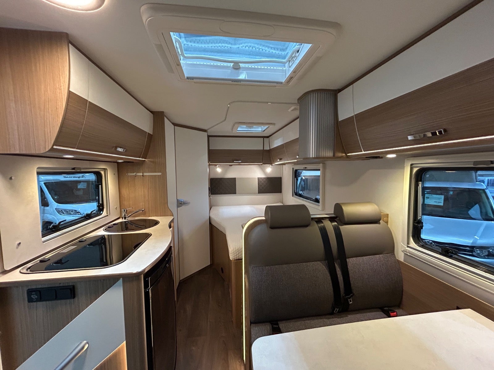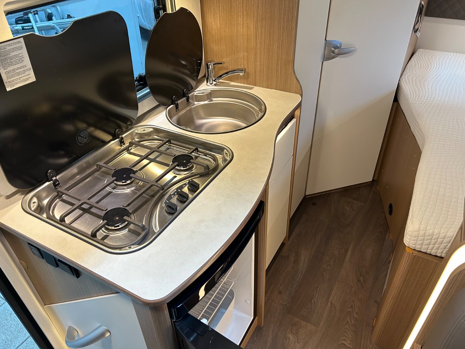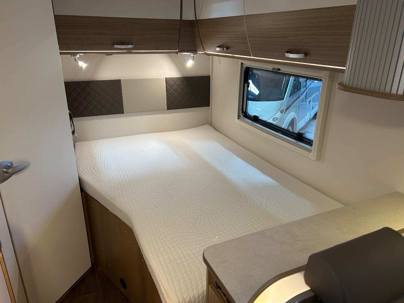 9 trins automatgear, kørecomputer, højdejust. forsæder, automatgear, aircondition, udv. temp. måler, dab+ radio, airbag, esp, dellæderindtræk, fjernb. centrallås, fartpilot, navigation, 16" alufælge, el-ruder, bakkamera, abs, antispin, esp, servo, 1 ejer, ikke ryger, nysynet, service ok, diesel partikel filter. cykelholder, garage, thule markise, gasblæsevarme, køleskab,super fin camper under 6 meter med masser af plads og luft. dobbeltseng og wc/bad i bagenden, siddegruppe til 4 med de 2 drejestole, fint køkken med god plads.