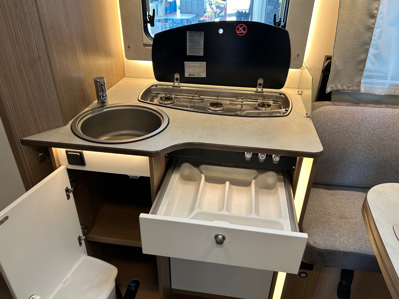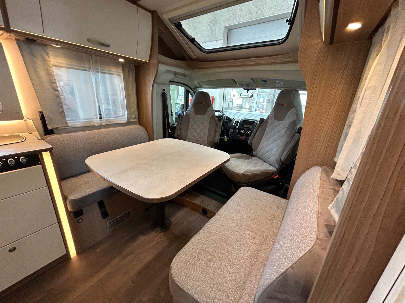 Populær indretning med queensbed - face2face siddegruppe - wc og separat brusekabine - vinkelkøkken og køleskab med separat fryser. Med solcelle, cykelholder, markise, el-trin, gasalarm, monogas med crashsikring, Truma Combi gasblæsevarme med el-patron 220 volt indbygget,kørecomputer, læderrat, højdejust. forsæder, delalcantaraindtræk, stofindtræk, alufælge, el-sidespejle m/varme, automatgear, aircondition, fjernb. centrallås, udv. temp. måler, fartpilot, el-ruder, dab radio, håndfrit til mobil, db. airbags, esp, bakkamera, antispin, apple carplay, android auto.