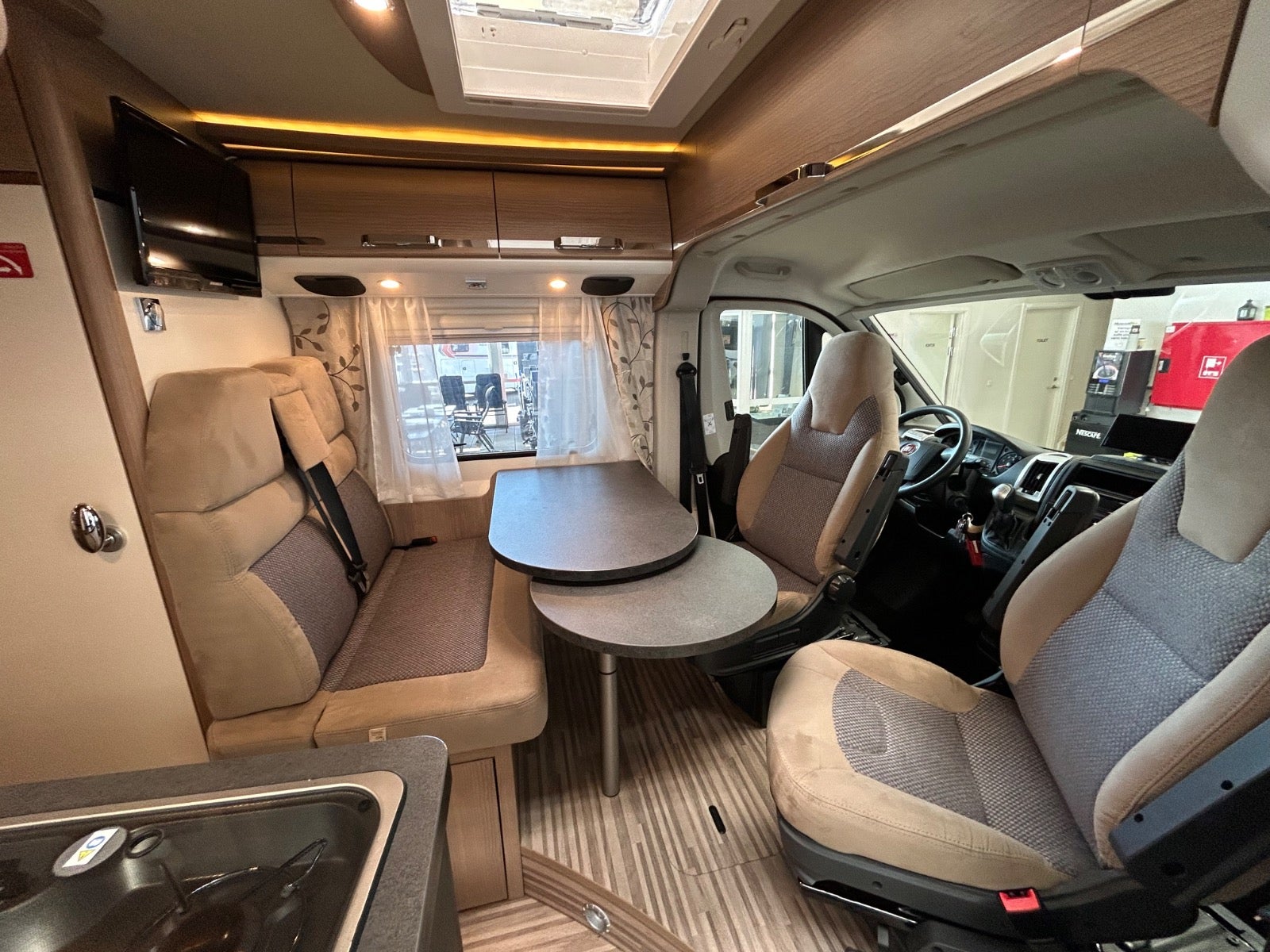 Automatgear - luksusvan - kun km 50000 - 150HK. Smart monteret med store 18" hjul, kængurugitter, 2 store fjernprojektører, TV og digital antenne, cykelholder, 2000 watt inverter - 12volt til 230volt, 2 betterier i bodel, markise, el-trin, Truma Combi E gasblæsevarme med 230 volt elpatron, 2 gasblus, køle/fryseskab monteret i højden, kørecomputer, delalcantaraindtræk, stofindtræk, højdejust. forsæder, 18" alufælge 235/65R, el-sidespejle m/varme, træk, helårshjul, fjernb. centrallås, udv. temp. måler, fartpilot, el-ruder, cd/radio, navigation, usb-a tilslutning, db. airbags, esp, bakkamera, antispin.Længde 599 - bredde 205 - højde 259.