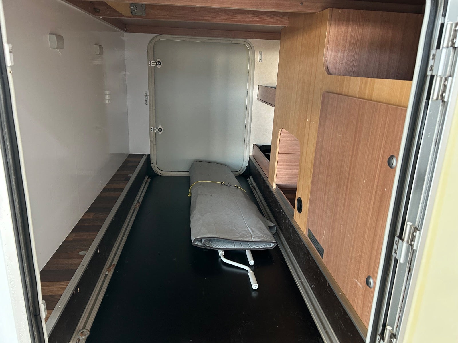 Super fin camper med 2 enkeltsenge og NYT læder i hele kabinen. Kronings klimaanlæg i bodel, 2 batterier i bodel, cykelholder, NY markise, el-trin, gas/kulilte/narkosealarm, ekstra sikkerhedslåse på garage og dør, blæsevarme på gas og EL - Truma Combi E, inverter, køle/fryseskab, 3 gasblus, kørecomputer, læderindtræk, højdejust. forsæder, alufælge, el-sidespejle m/varme, aircondition, fartpilot, fjernb. centrallås, el-ruder, dab radio, esp, db. airbags, bakkamera, NY bakcensor.Længde 696 - bredde 235 - højde 275.