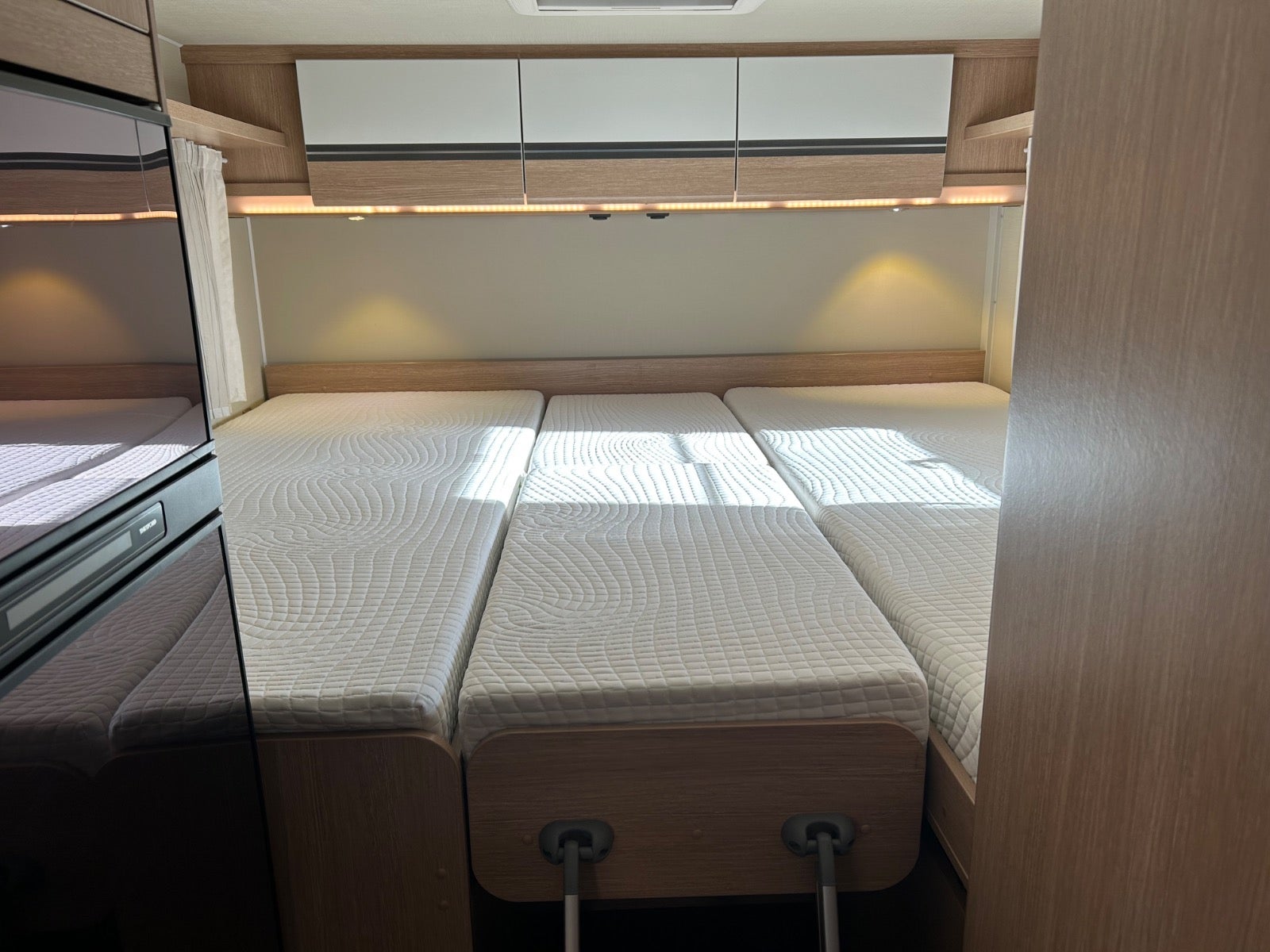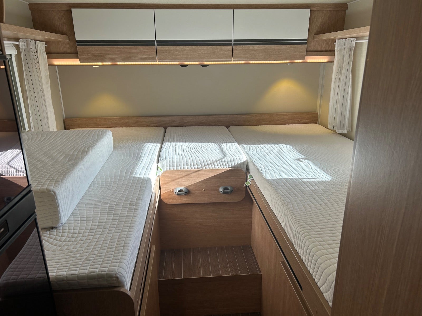 Automatgear - 2 store enkeltsenge - kombineret wc/bad - siddegruppe til 4.Med gasfyldeflaske, 200 w solcelle, 2 stk. 95ah batterier i bodel, TV med soundbar, digital antenne, cykelholder, duo-gas dvs. automatisk omskiftning mellem gasflasker, markise, el-trin, kørecomputer, gasblæsevarme, stort køle/fryse skab, dellæderindtræk, højdejust. forsæder, stofindtræk, el-sidespejle m/varme, træk, aircondition, fjernb. centrallås, udv. temp. måler, fartpilot, el-ruder, db. airbags, esp, antispin, bakkamera, dab radio, apple carplay, android auto, håndfrit til mobil, usb-a tilslutning, 150HK.