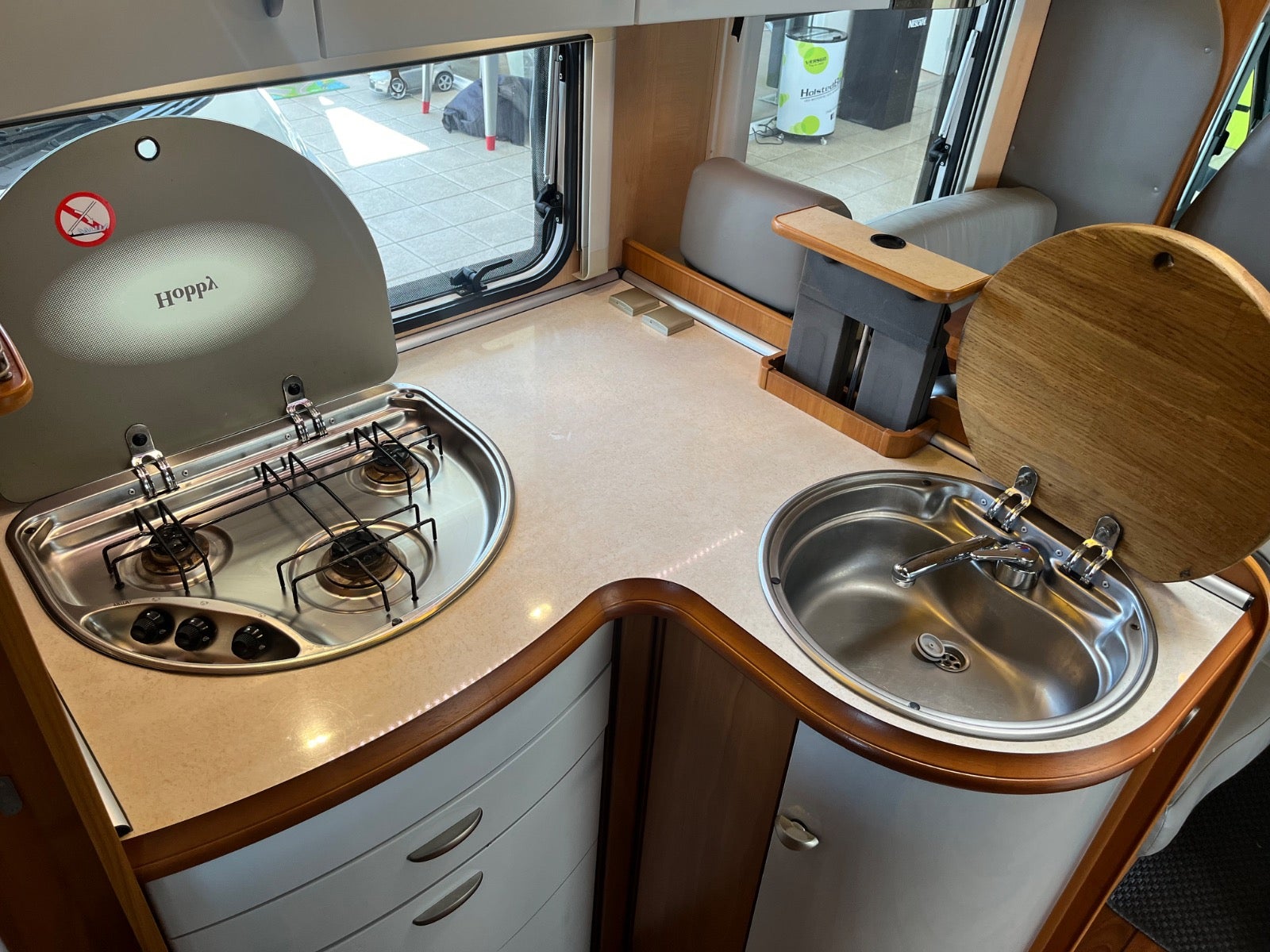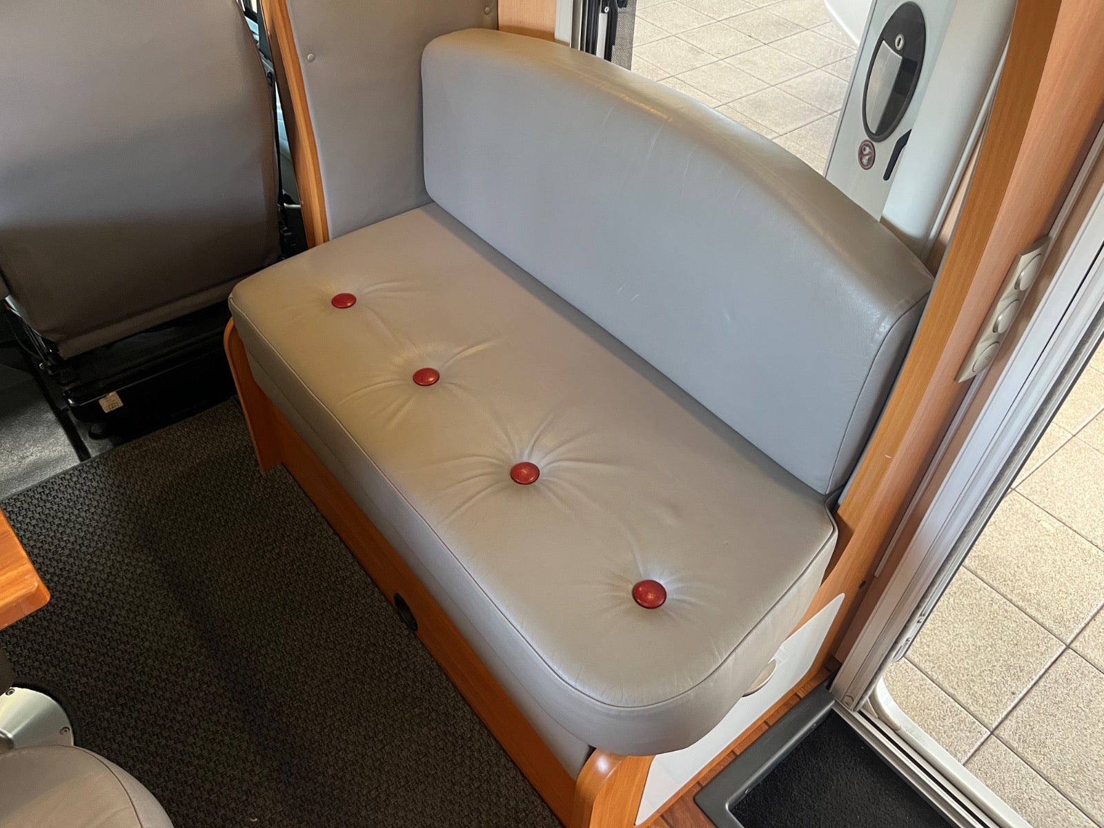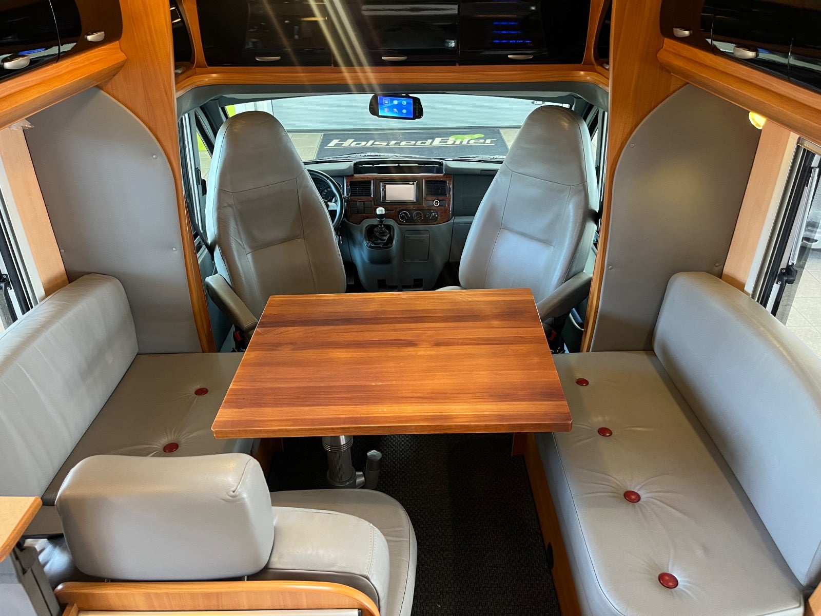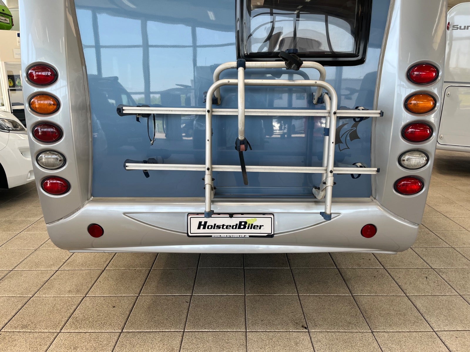 kørecomputer, multifunktionsrat, aircondition, udv. temp. måler, airbag, esp, læderrat, fjernb. centrallås, fartpilot, kunstlæderindtræk, højdejust. førersæde, el-ruder, bakkamera, cykelholder til 2, markise, el-trin, tv, siddegruppe med 5 siddepladser incl de 2 drejestole, plissegardiner i førerhus, Solceller, 150 ah lithium batteri, stor dobbeltseng, vinkelkøkken, stor køle og fryseskab, comi blæsevarme, brusekabine og toilet, plads til 2x10 kg gasflasker, diesel partikel filter, pæn og velholdt,Længde 675 højde 285 bredde 232.