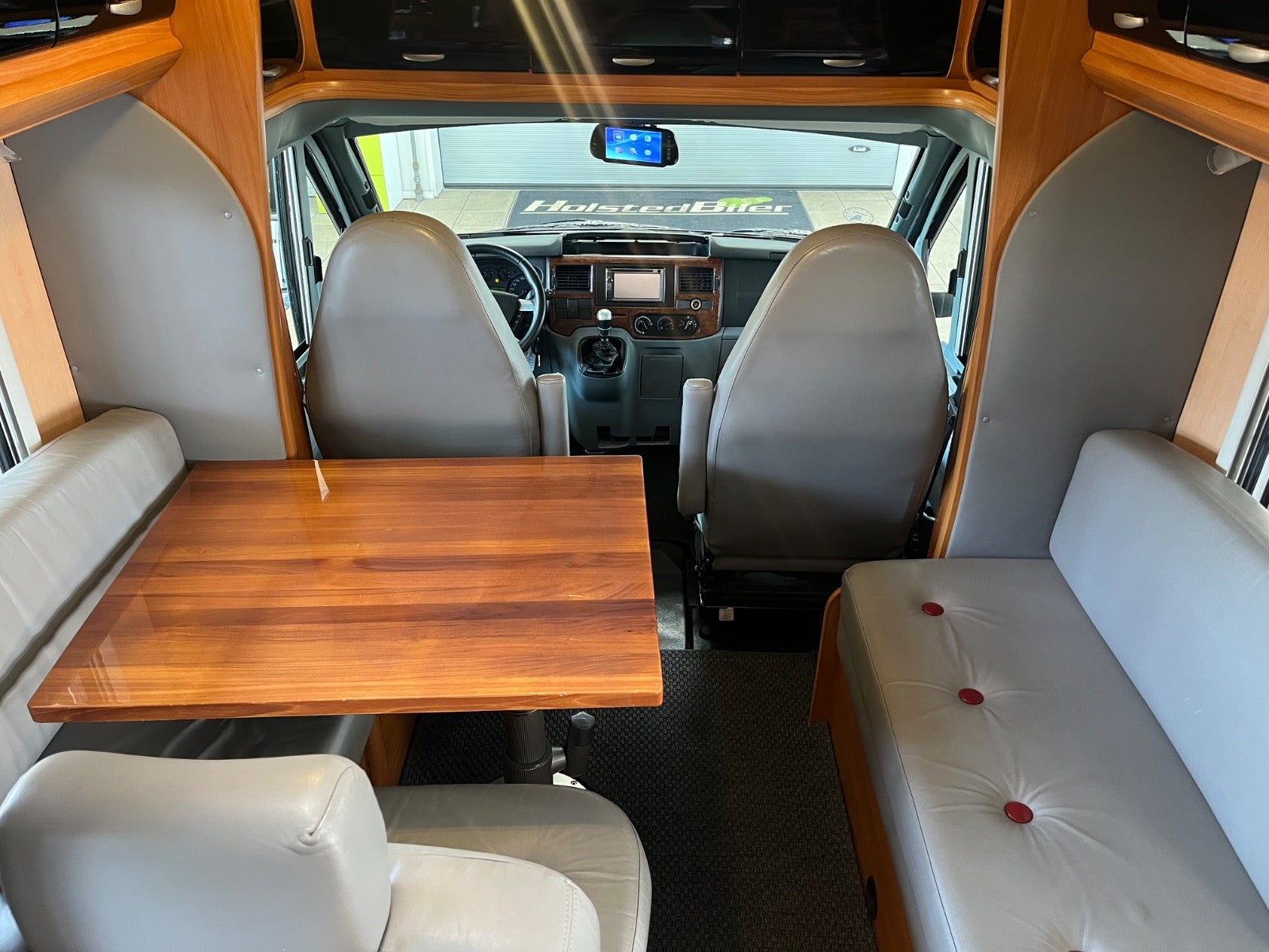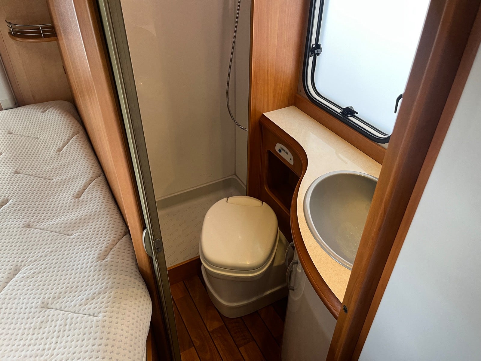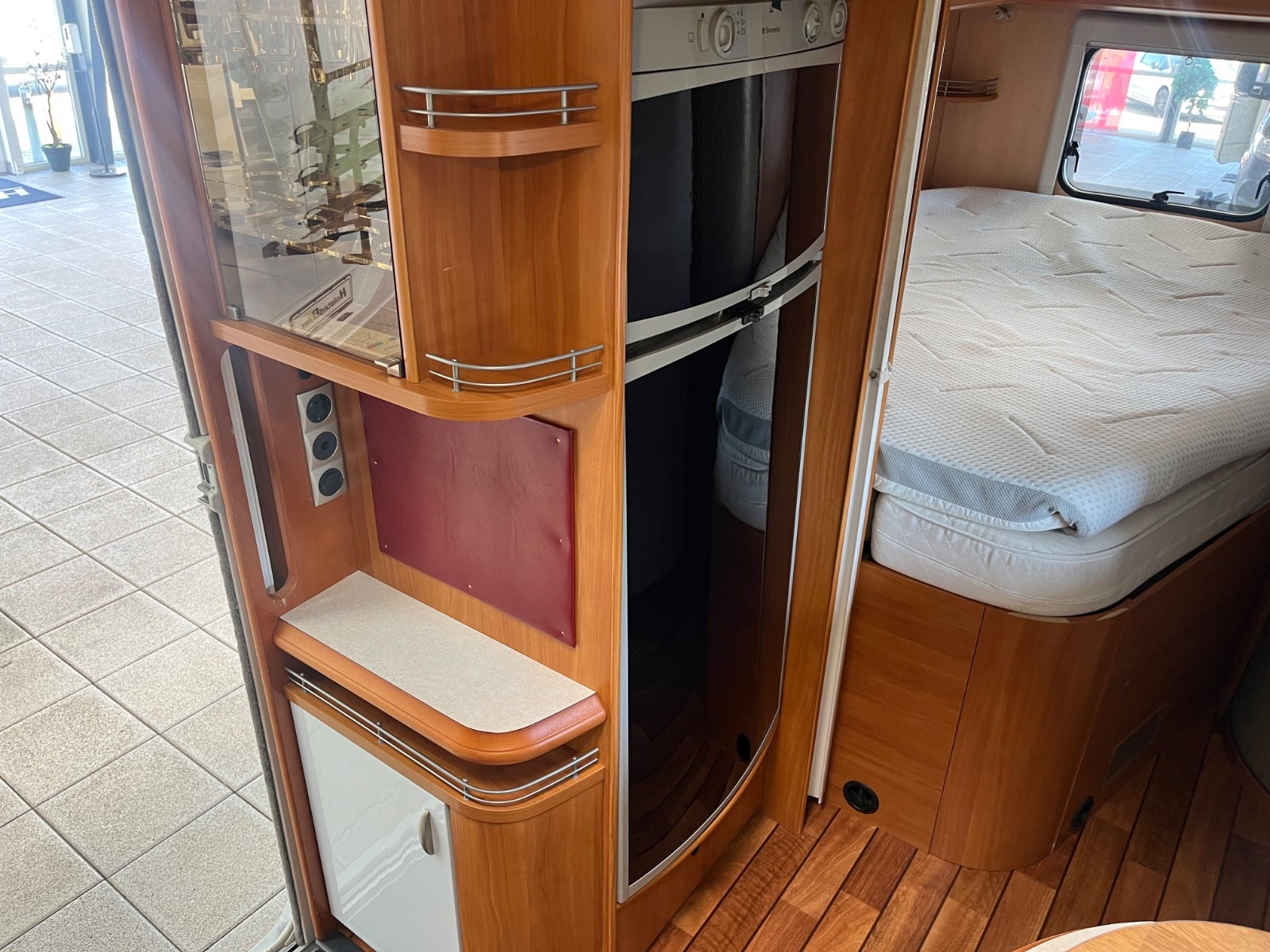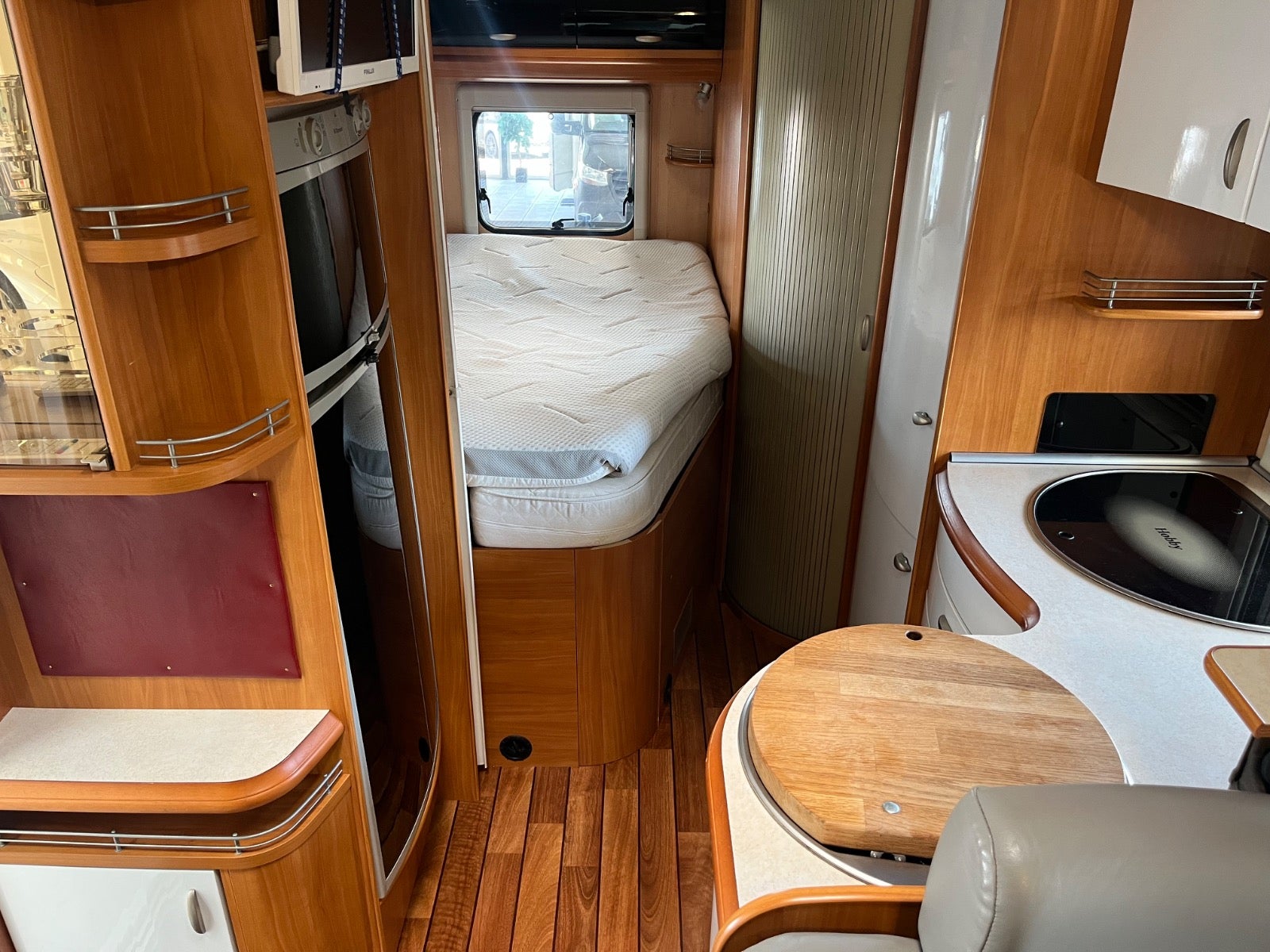 kørecomputer, multifunktionsrat, aircondition, udv. temp. måler, airbag, esp, læderrat, fjernb. centrallås, fartpilot, kunstlæderindtræk, højdejust. førersæde, el-ruder, bakkamera, cykelholder til 2, markise, el-trin, tv, siddegruppe med 5 siddepladser incl de 2 drejestole, plissegardiner i førerhus, Solceller, 150 ah lithium batteri, stor dobbeltseng, vinkelkøkken, stor køle og fryseskab, comi blæsevarme, brusekabine og toilet, plads til 2x10 kg gasflasker, diesel partikel filter, pæn og velholdt,Længde 675 højde 285 bredde 232.