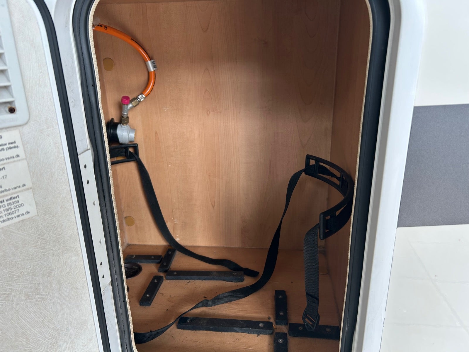 2500 watt inverter, 12 volt tagventilator, monogas monteret, markise, cykelholder, multifunktionsrat, højdejust. forsæder, stofindtræk, el-sidespejle m/varme, fartpilot, el-ruder, android auto, apple carplay, esp, antispin.