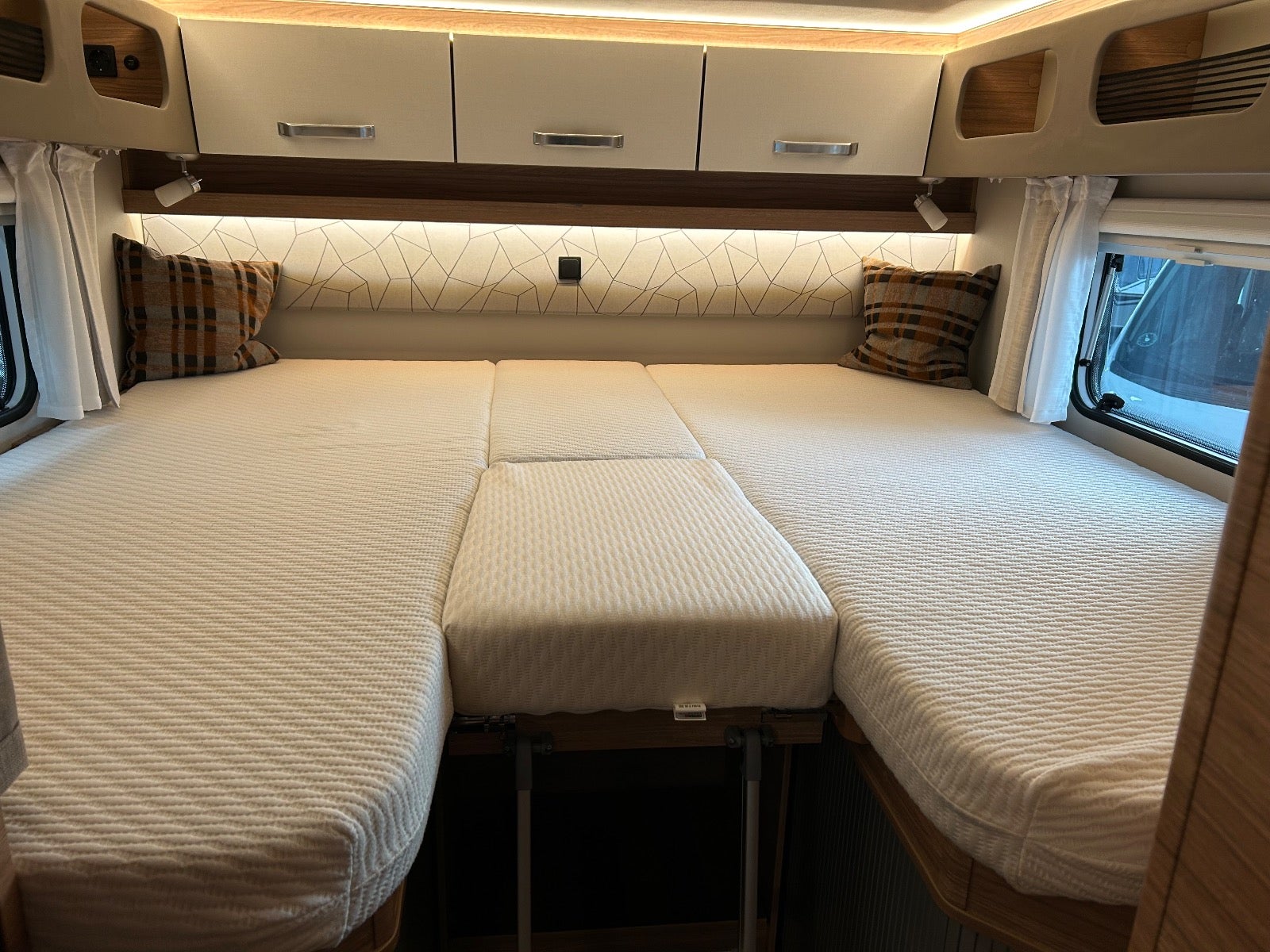 Black Edition med nye sorte fælge, sort højglansmalet frontskørt, luftindtag, kofanger nederst og hvidmalede spejle. Kvalitet fra Mercedes Weinsberg med 2 store senge og mulighed for stor dobbelt seng - kombineret wc/baderum - køkken med stort køl/frys og store skuffer - siddegruppe til 4 med de 2 drejestole. NY STOR udstyrspakke monteret: 200 watt solceller - 2 stk 100 ah lithium batteri - 2000 watt inverter - Tertek tv/internet antenne - Truma duo-gas - gasudtag til grill - udvendig bruser. TV på arm, markise, el-trin, Truma gas blæsevarme, cykelholder, fuldaut. klima, fjernb. c.lås, nøglefri betjening, fartpilot, kørecomputer, infocenter, startspærre, udv. temp. måler, højdejust. forsæder, el-ruder, el-spejle m/varme, bakkamera, automatisk start/stop, elektrisk parkeringsbremse, dab radio, navigation, multifunktionsrat, håndfrit til mobil, bluetooth, android auto, apple carplay, usb tilslutning, armlæn, kopholder, dellæder, læderrat, tågelygter, db. airbags, abs, antispin, esp, servo, vognbaneassistent, nysynet, service ok, diesel partikel filter.Længde 692 - Bredde 220 - Højde 295