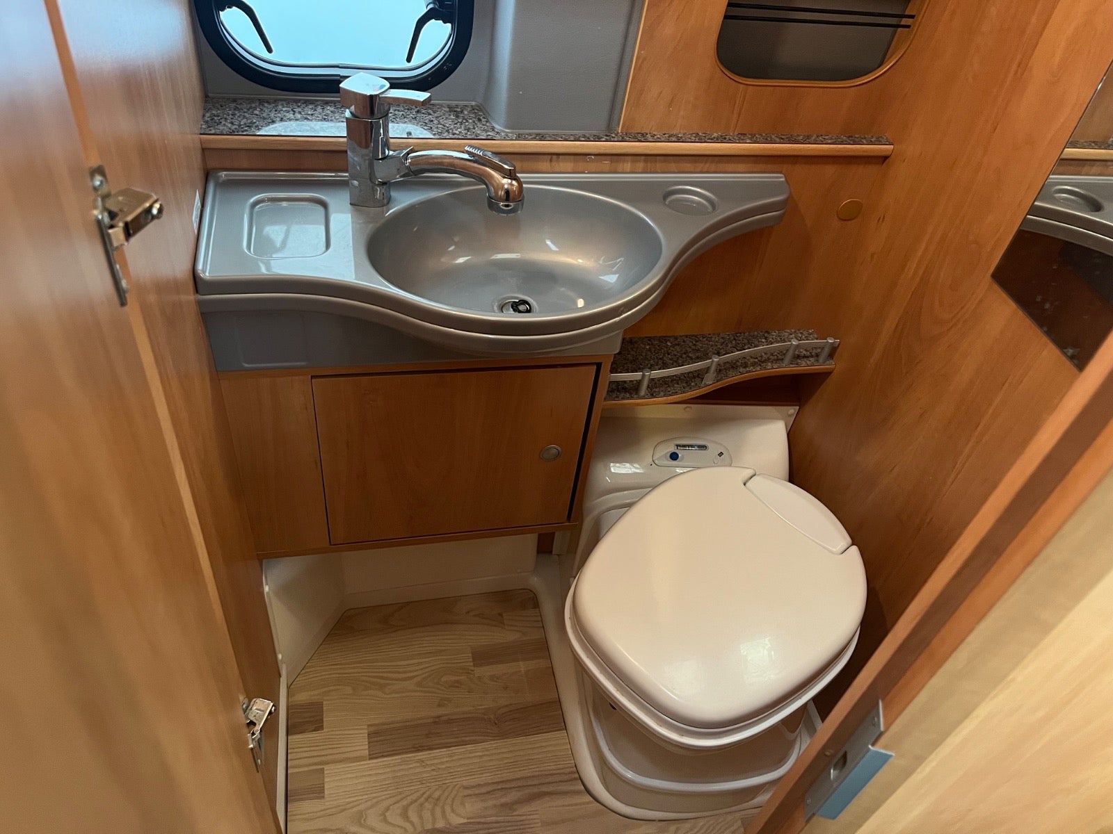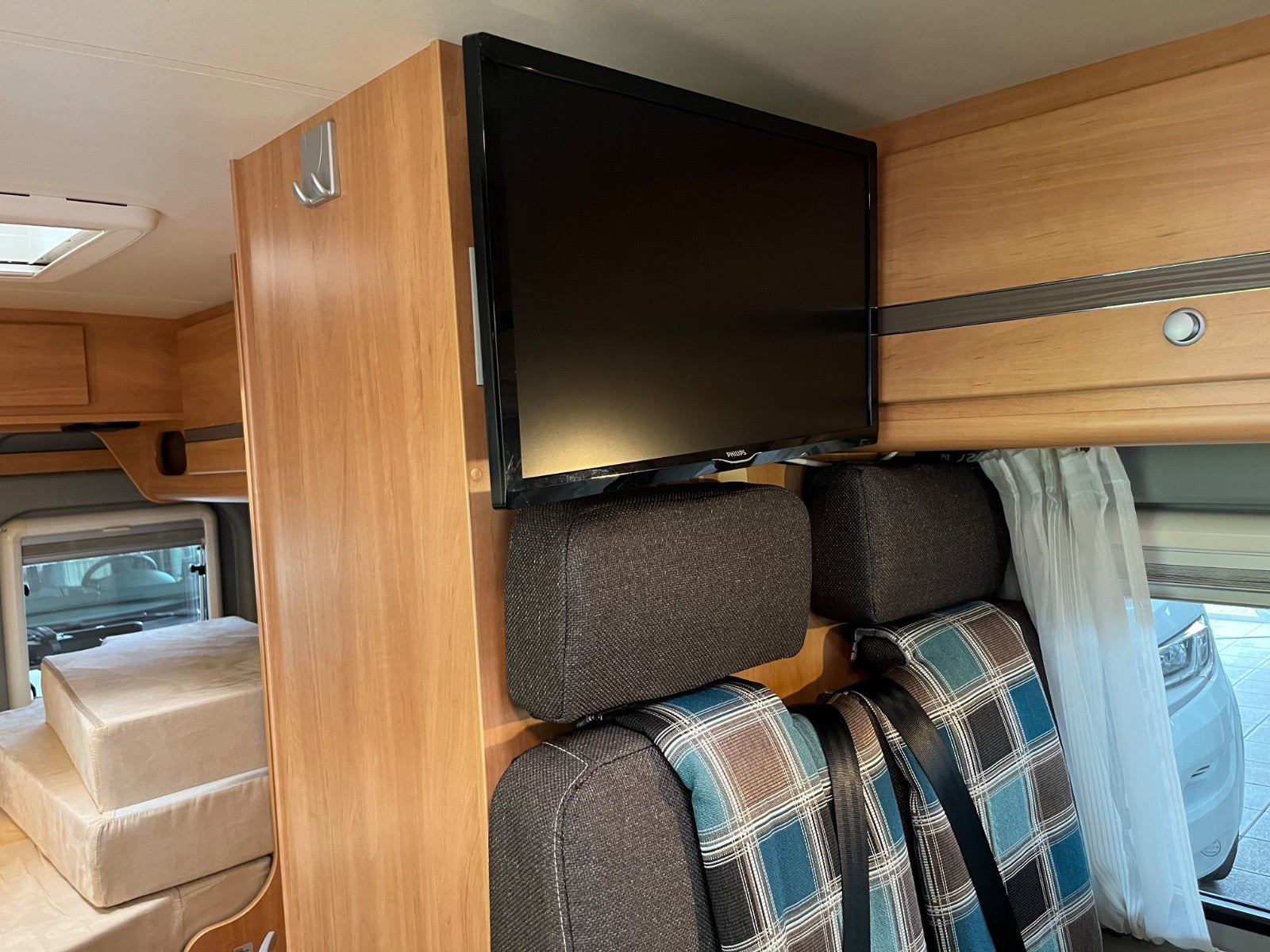 kørecomputer, stofindtræk, el-sidespejle, aircondition, fjernb. centrallås, fartpilot, el-ruder, udv. temp. måler, navigation, esp, bakkamera, højdejust. førersæde, 4 airbags, tv på arm, markise, el-trin, myggedør, Thule cykelholder til 2, truma combi gasblæsevarme, kompressor køle/fryseskab, integrerede rullegardiner, wc/bad kombineret, 4 siddepladser med 2 drejestole, dobbeltseng i bag, der er mulighed for opredning ved spisebordet til 2, undervognsbehandlet,Længde 599 højde 274 bredde 206.