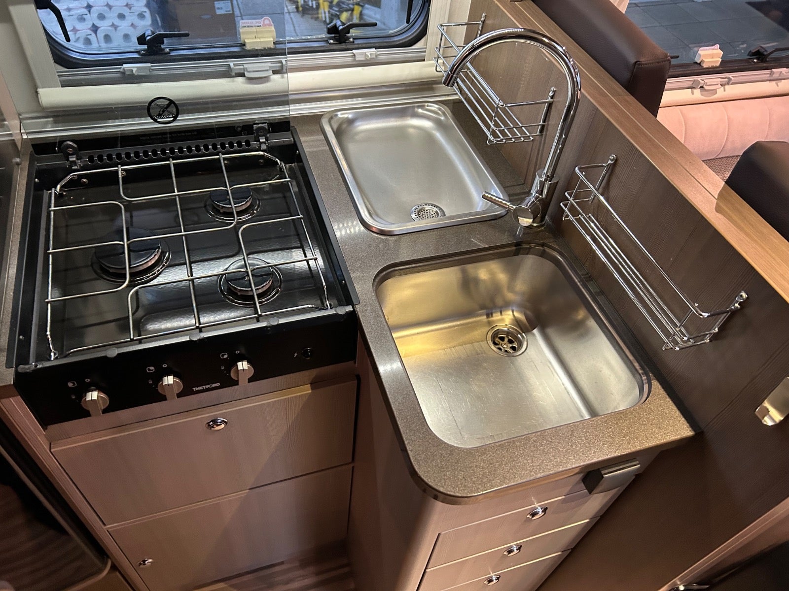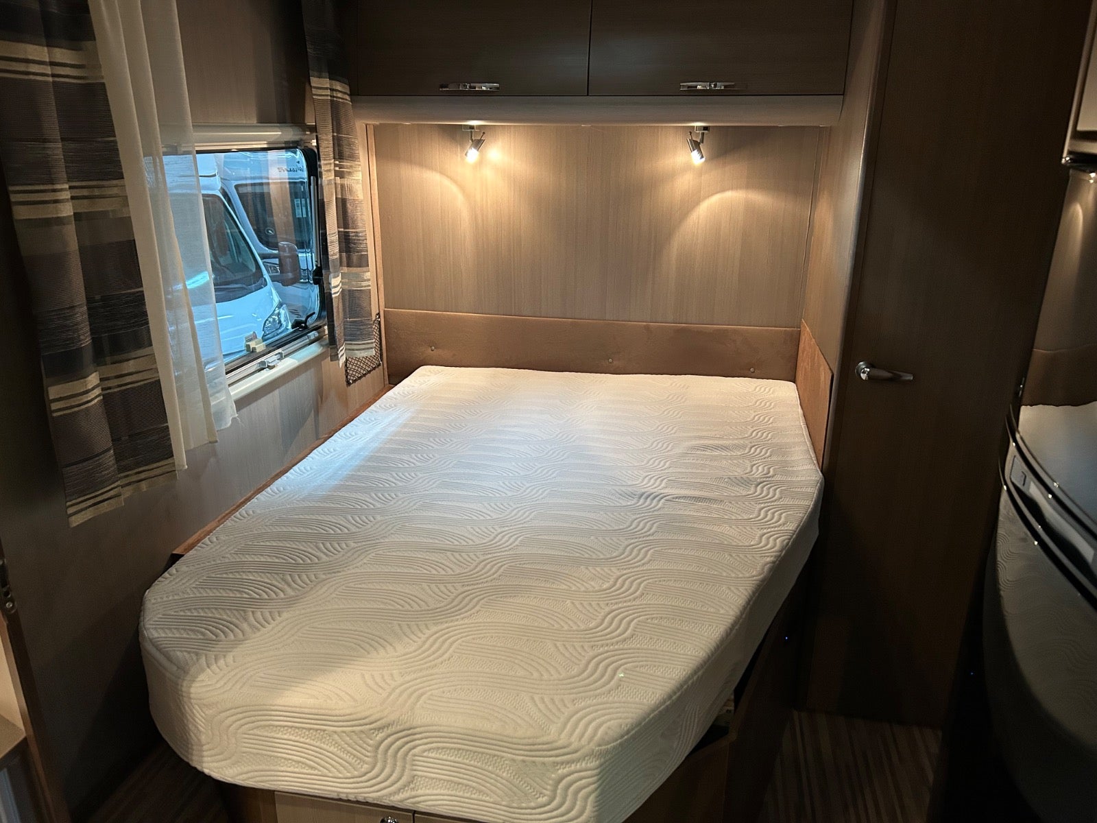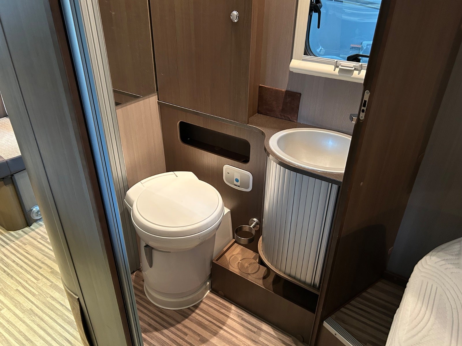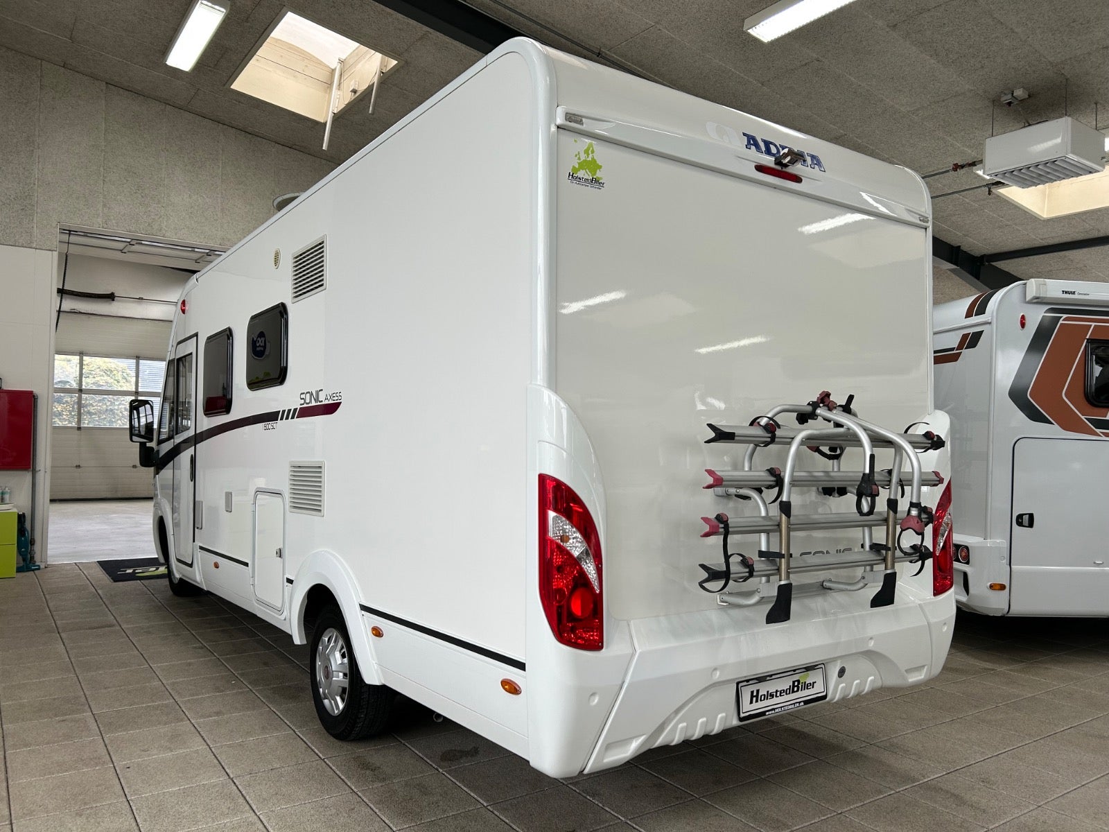 Fin helintegreret Adria med dobbeltseng og bad i bag, wc og køkken med plads i midten, siddegruppe til 5-6 personer med hæve/sænkeseng over.Duo-gas dvs. automatisk omskiftning mellem gasflasker, Truma klimaanlæg i bodel, solcelle, markise, el-trin, Truma combi blæsevarme, køleskab og separat fryser, sog udsugning på wc, emhætte, gas/kulilte/narkosealarm, cykelholder, kørecomputer, dellæderindtræk, højdejusterbare forsæder, integrerede rullegardiner, stofindtræk, el-sidespejle m/varme, aircondition, fjernb. centrallås, fartpilot, apple carplay, android auto, db. airbags, esp, bakkamera, antispin, Thule ekstra dørlås/håndtag.