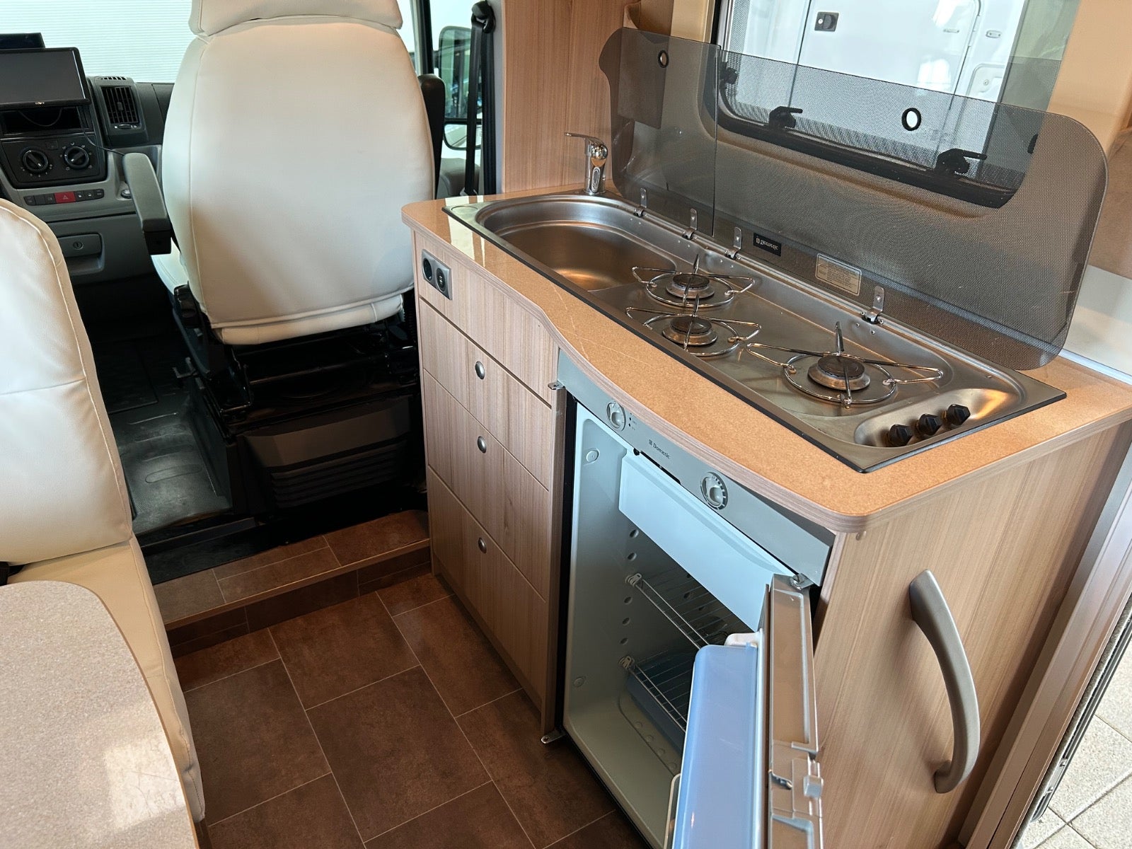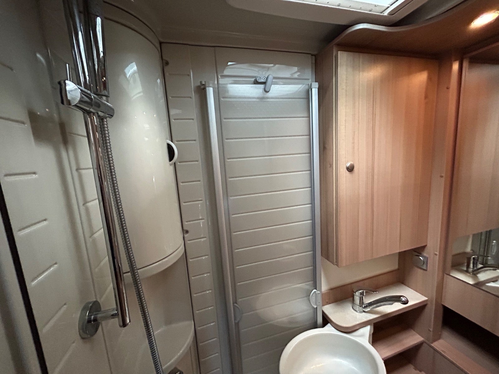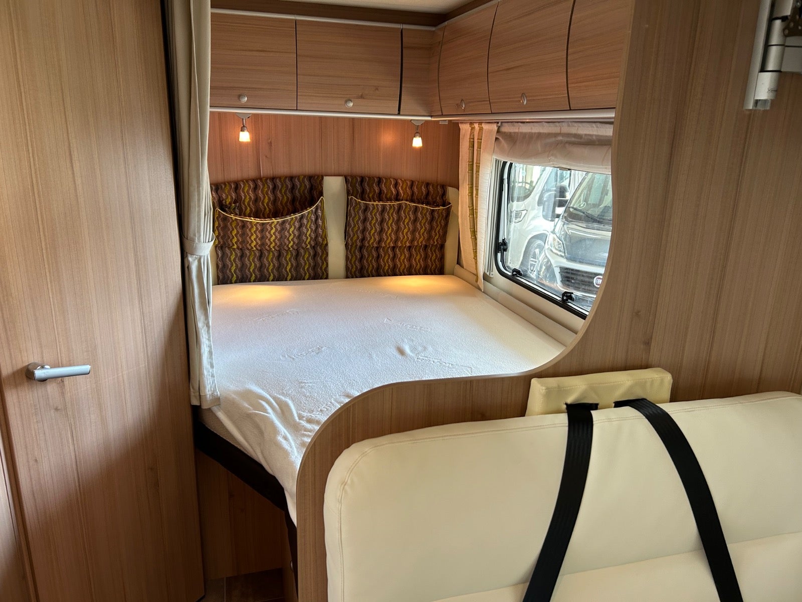 6 sele og sovepladser - NYT læder overalt - kun 654 cm - fransk seng og hæve/sænkeseng - stort wc/bad i bagenden - køkken og siddegruppe midt i bilen, 2 solceller, 2 batterier i bodel, gasblæsevarme, markise, el-trin, cykelholder, gas/kulilte/narkosealarm, læderindtræk, højdejust. forsæder, alufælge, el-sidespejle m/varme, aircondition, fjernb. centrallås, udv. temp. måler, fartpilot, el-ruder, esp, db. airbags, antispin, bakkamera, dab+ radio, dab radio, sikkerhedslås/håndtag på indgangsdør, TV-arm.Længde 654 bredde 230 højde 275.