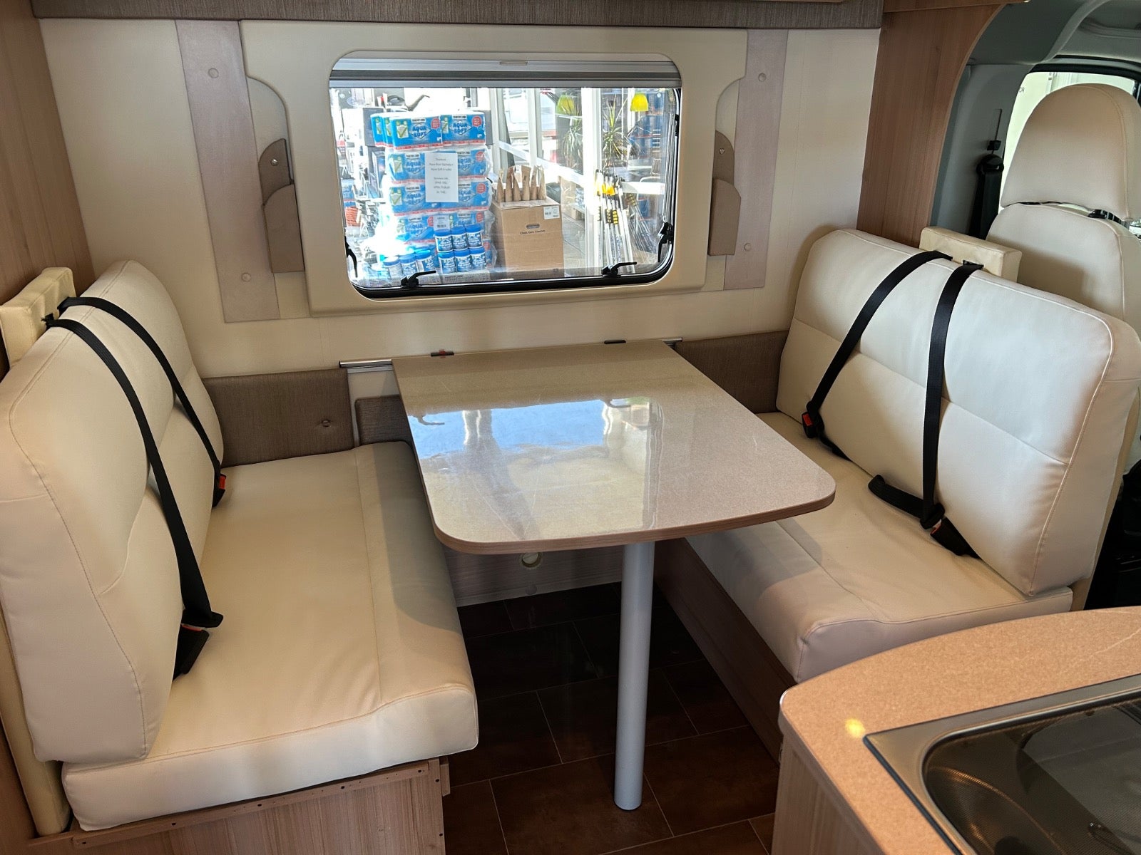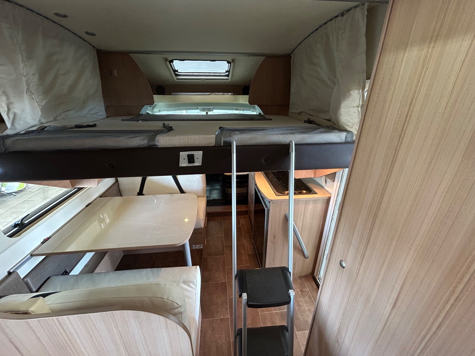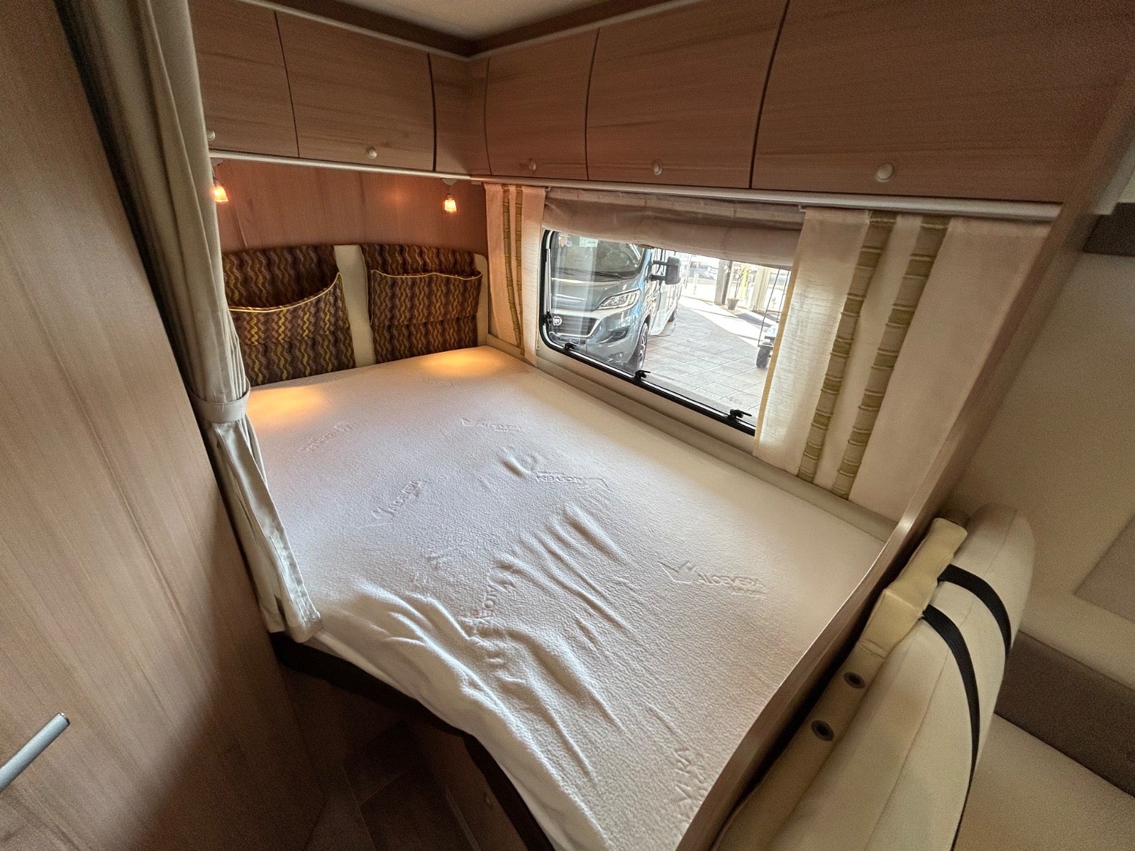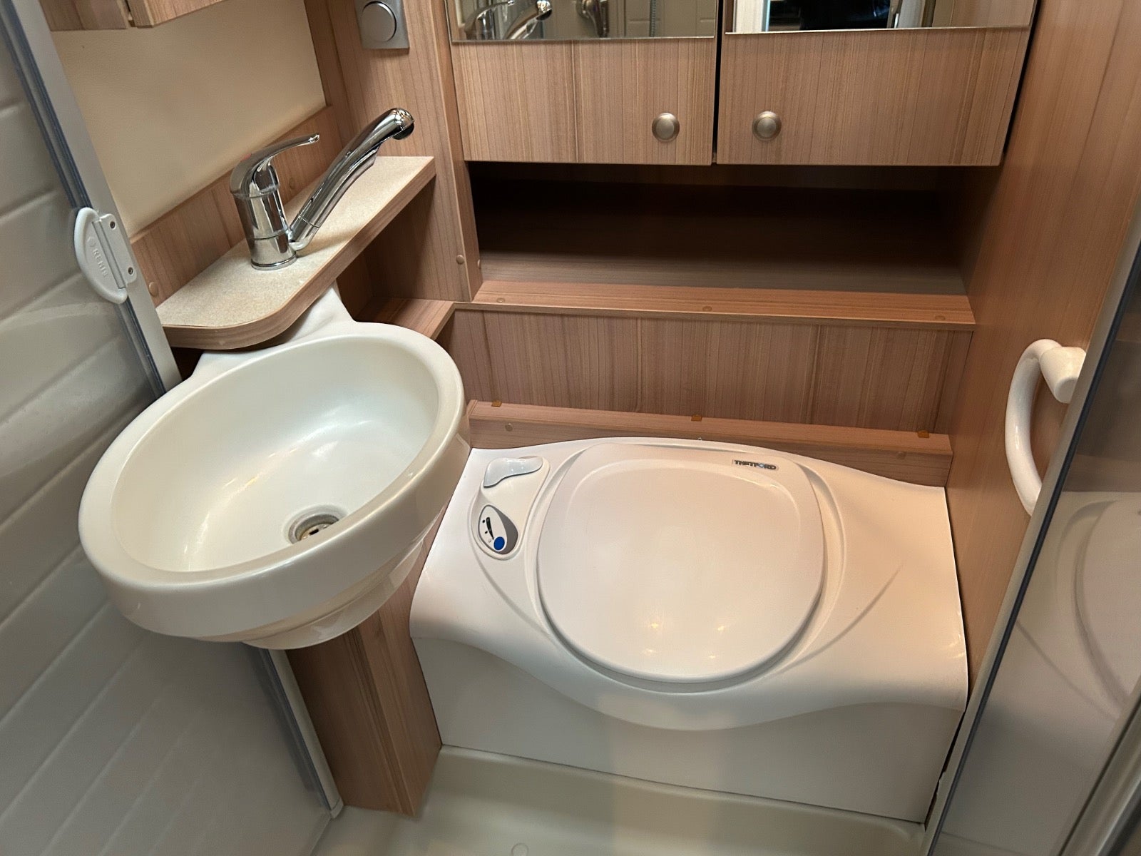 6 sele og sovepladser - NYT læder overalt - kun 654 cm - fransk seng og hæve/sænkeseng - stort wc/bad i bagenden - køkken og siddegruppe midt i bilen, 2 solceller, 2 batterier i bodel, gasblæsevarme, markise, el-trin, cykelholder, gas/kulilte/narkosealarm, læderindtræk, højdejust. forsæder, alufælge, el-sidespejle m/varme, aircondition, fjernb. centrallås, udv. temp. måler, fartpilot, el-ruder, esp, db. airbags, antispin, bakkamera, dab+ radio, dab radio, sikkerhedslås/håndtag på indgangsdør, TV-arm.Længde 654 bredde 230 højde 275.