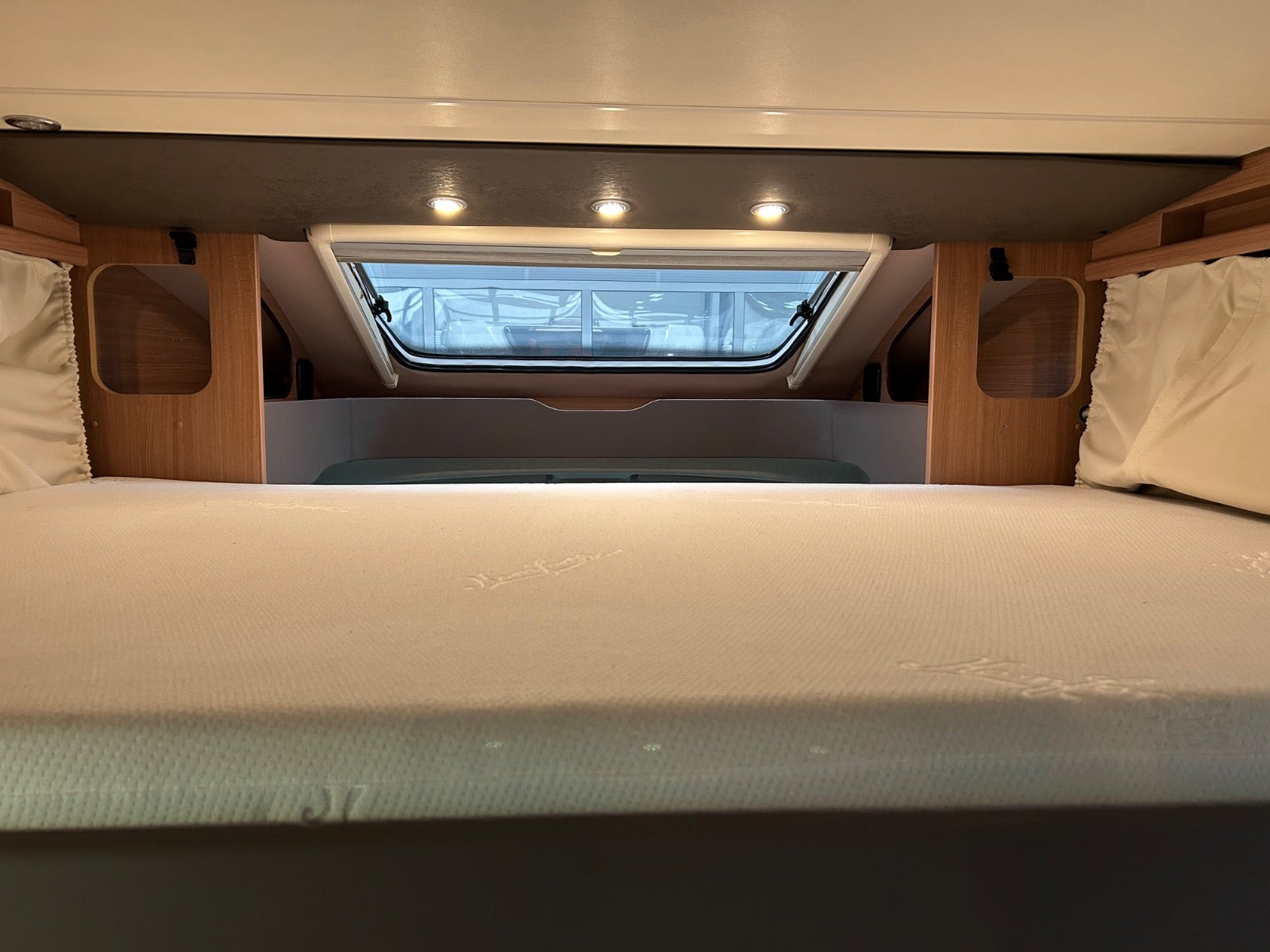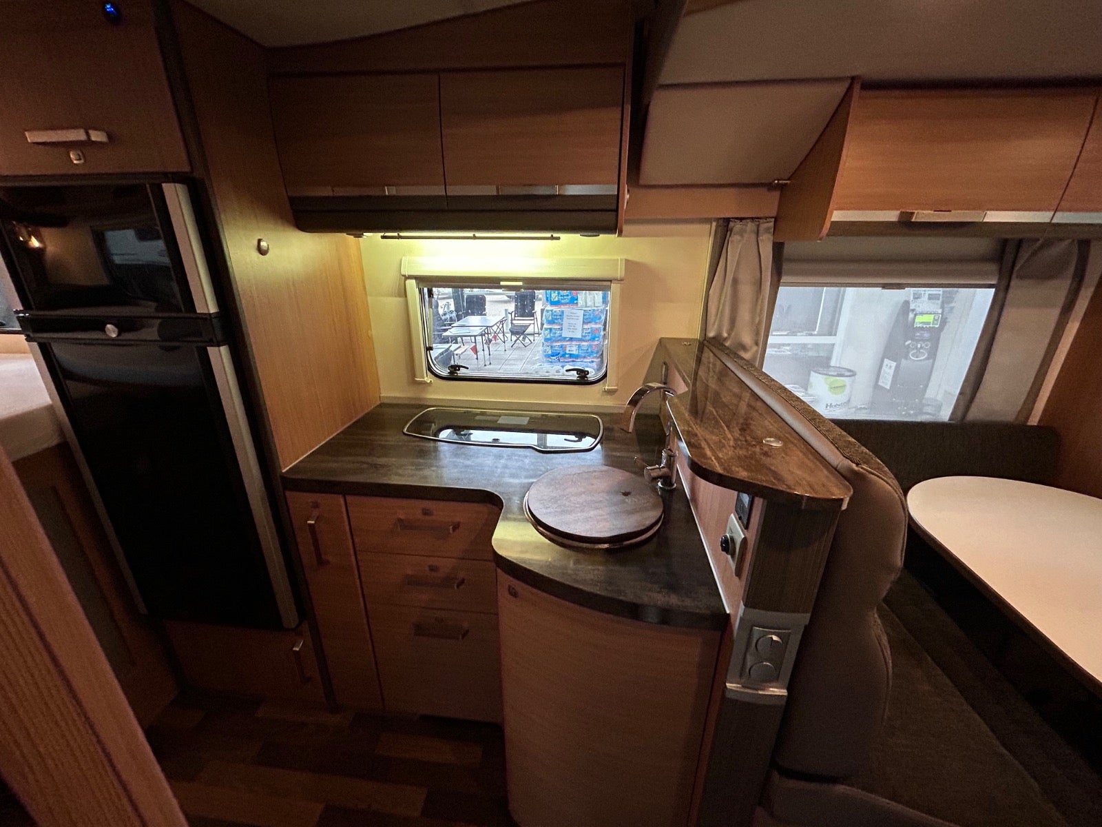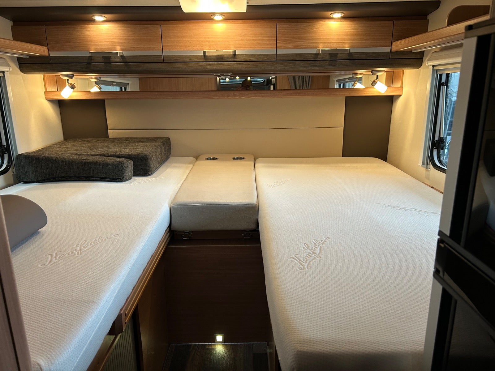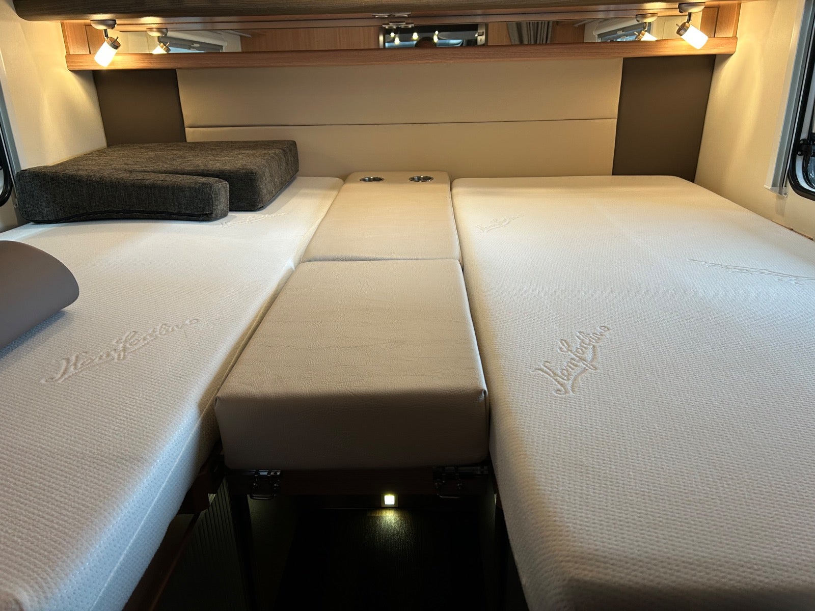 Flot og velholdt Knaus med 2 enkeltsenge og hæve/sænkeseng. Nyere køle/fryseskab, køkken med masser af skuffer, stort klimaanlæg i bodel, støtteben i bag, cykelholder, plissegardiner, markise, el-trin, TV og TV-arm, 1500 watt inverter, 2 batterier i bodel, kørecomputer, læderindtræk, højdejust. forsæder, alufælge, el-sidespejle m/varme, træk, aircondition, fjernb. centrallås, udv. temp. måler, fartpilot, el-ruder, db. airbags, esp, bakkamera, antispin, navigation, musikstreaming via bluetooth.Længde 748 bredde 232 højde 294.