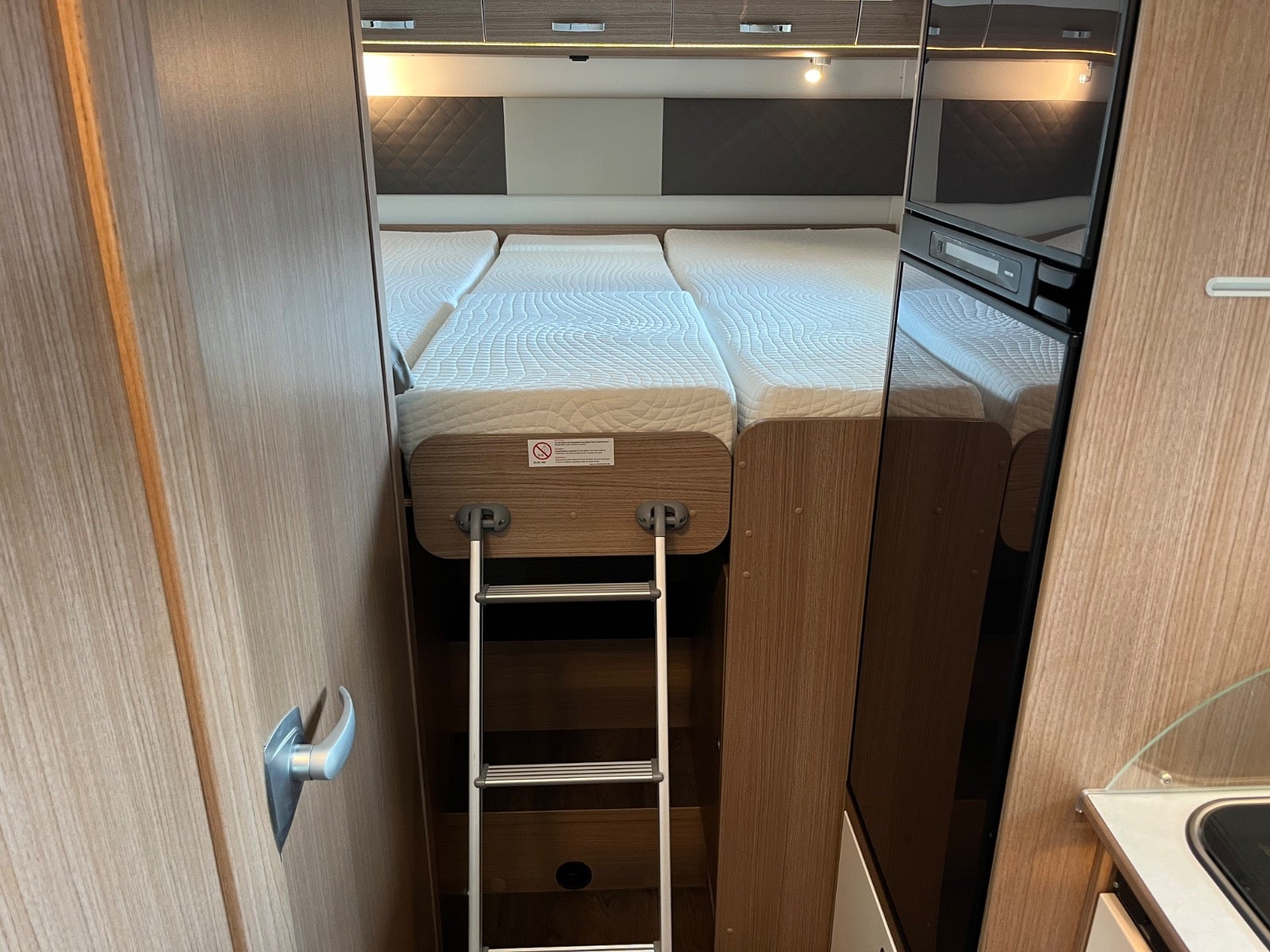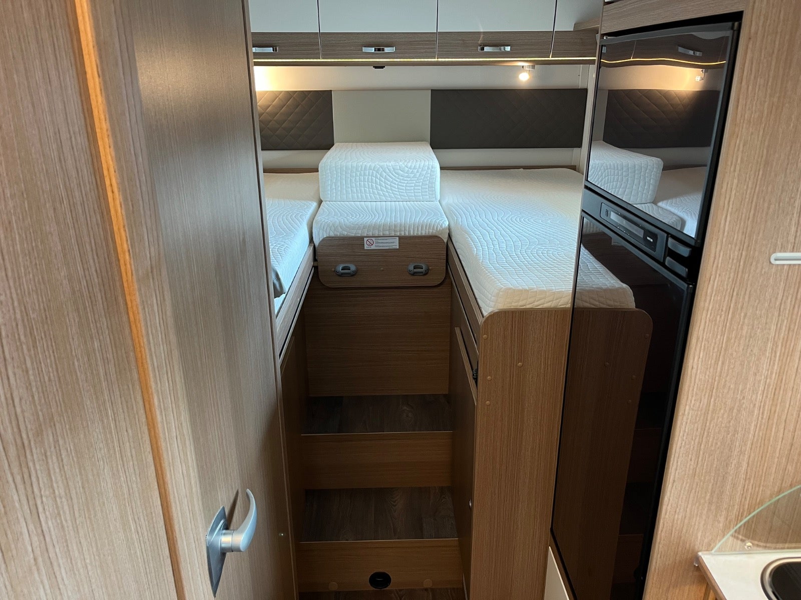 9 trins automatgear, kørecomputer, delkunstlæderindtræk, højdejust. forsæder, automatgear, aircondition, udv. temp. måler, esp, fjernb. centrallås, fartpilot, cd/radio, højdejust. førersæde, 16" alufælge, el-ruder, håndfrit til mobil, usb-a tilslutning, bakkamera, 2 store enkeltsenge i bag som let laves om til stor dobbeltseng, wc og brusekabine ved sengene, vinkelkøkken og køl/frys midt i bil, stor siddegruppe, markise, cykelholder til 3 cykler, myggedør, el-trin, gasalarm, luftaffjedring i bag, træk, nyserviceret, nysynet, ny tandrem, totalvægt 3500 kg, Euro 6,Længde 738 - bredde 232 - højde 293.