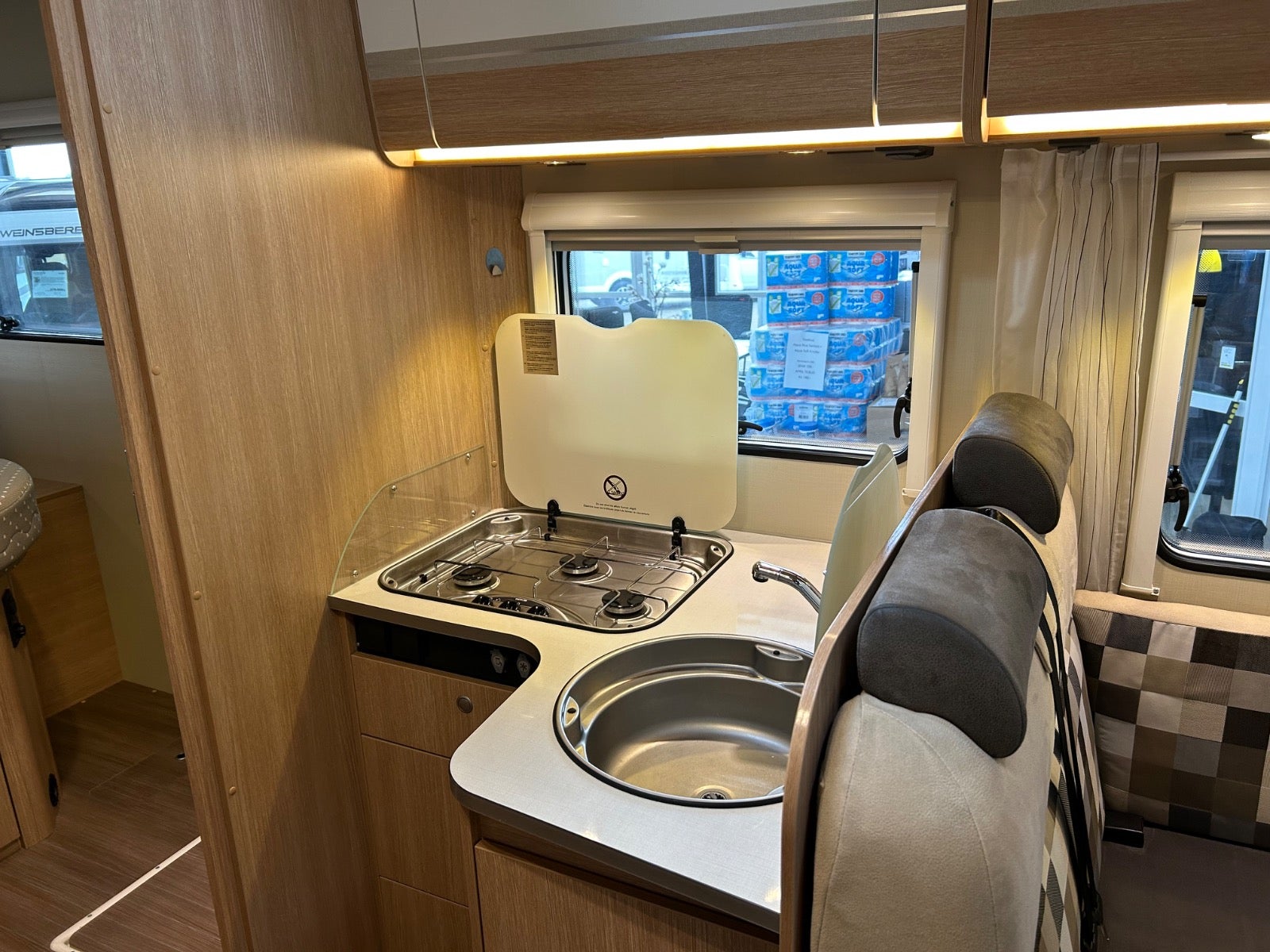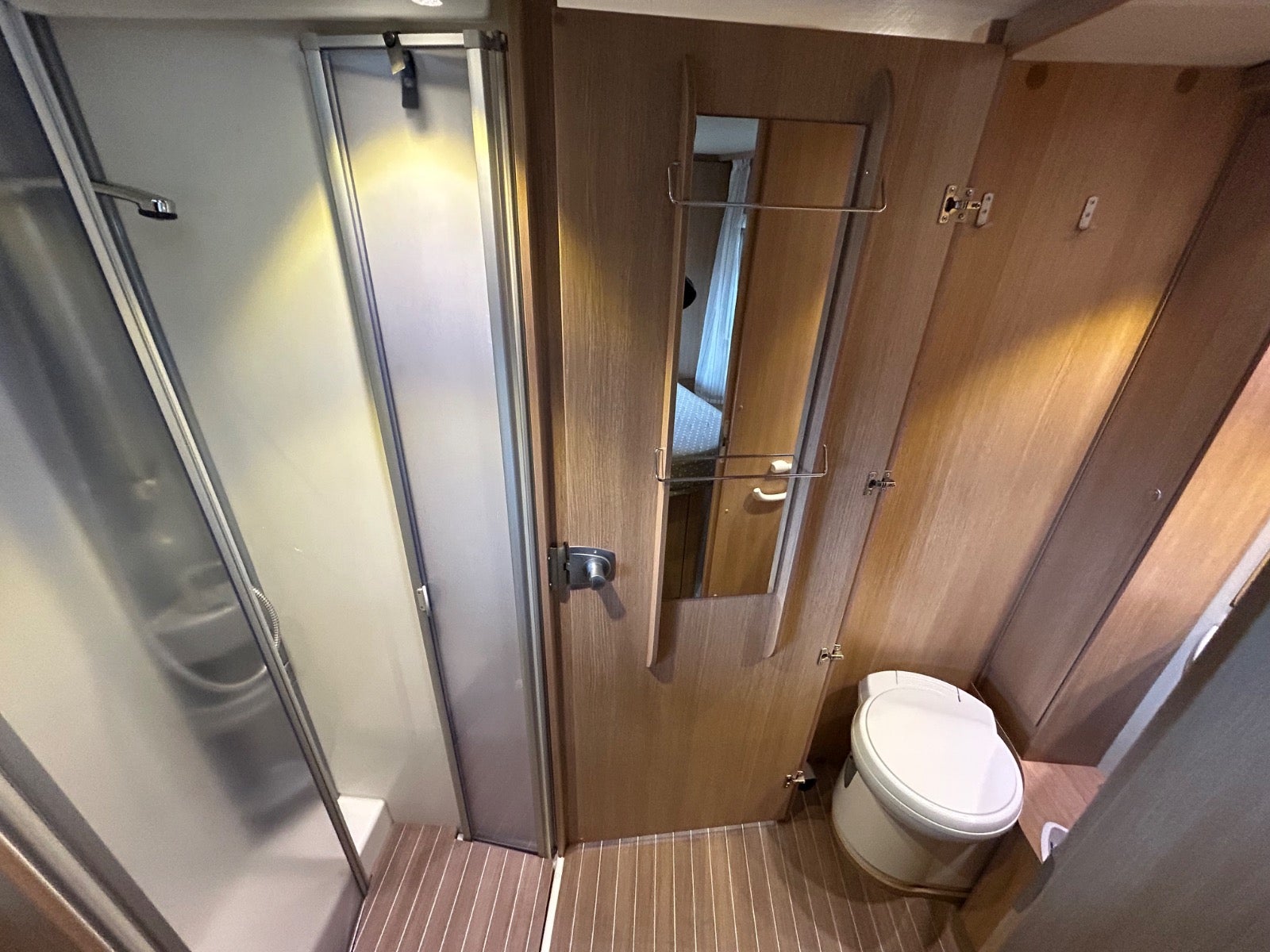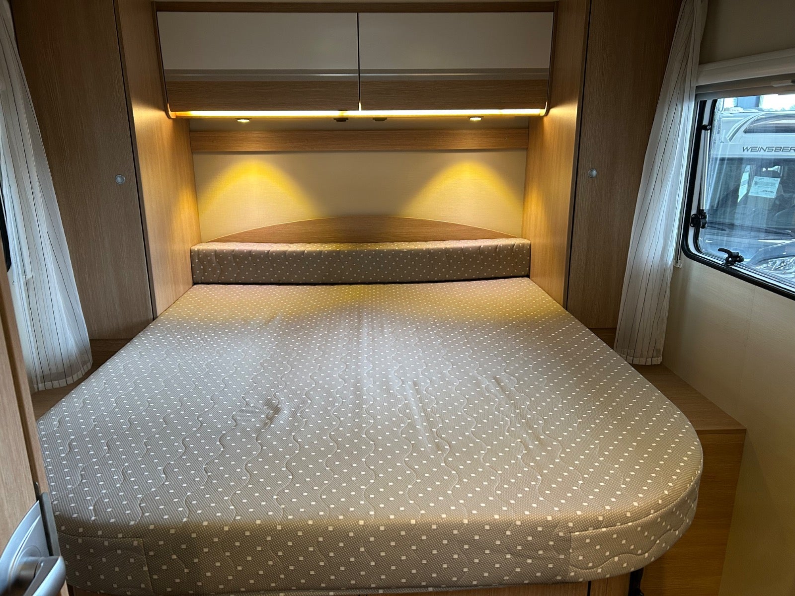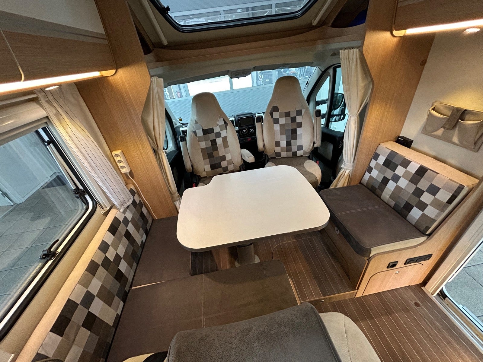 Stort soveværelse med queensbed, separat bruser og wc/håndvask. Vinkelkøkken og køl/frys med TV monteret ovenpå. Siddegruppe til 5. Markise, 2000 watt inverter, solceller, duo-gas - dvs automatisk omskiftning mellem gasflasker, kantsyet tæpper i bodel, truma comi blæsevarme, el-trin, cykelholder, kørecomputer, højdejust. forsæder, alcantaraindtræk, stofindtræk, el-sidespejle m/varme, automatgear, aircondition, fjernb. centrallås, udv. temp. måler, fartpilot, el-ruder, db. airbags, esp, bakkamera, antispinLængde 743 bredde 233 højde 291.