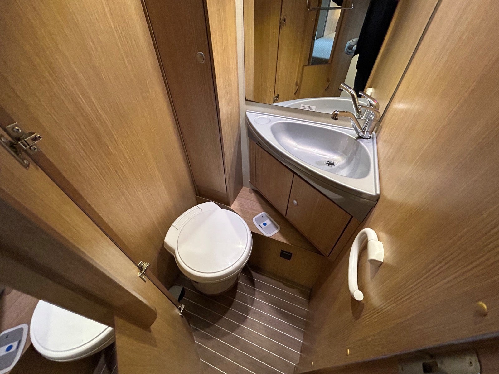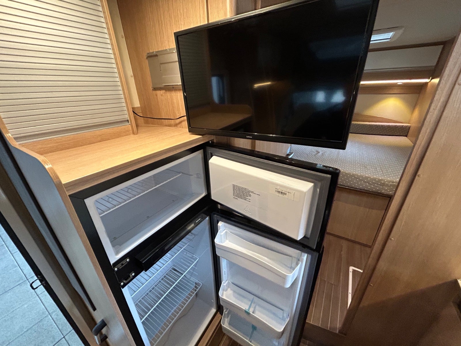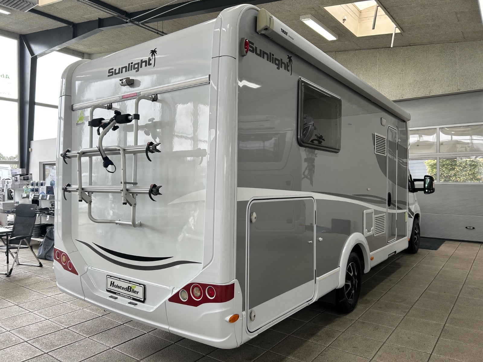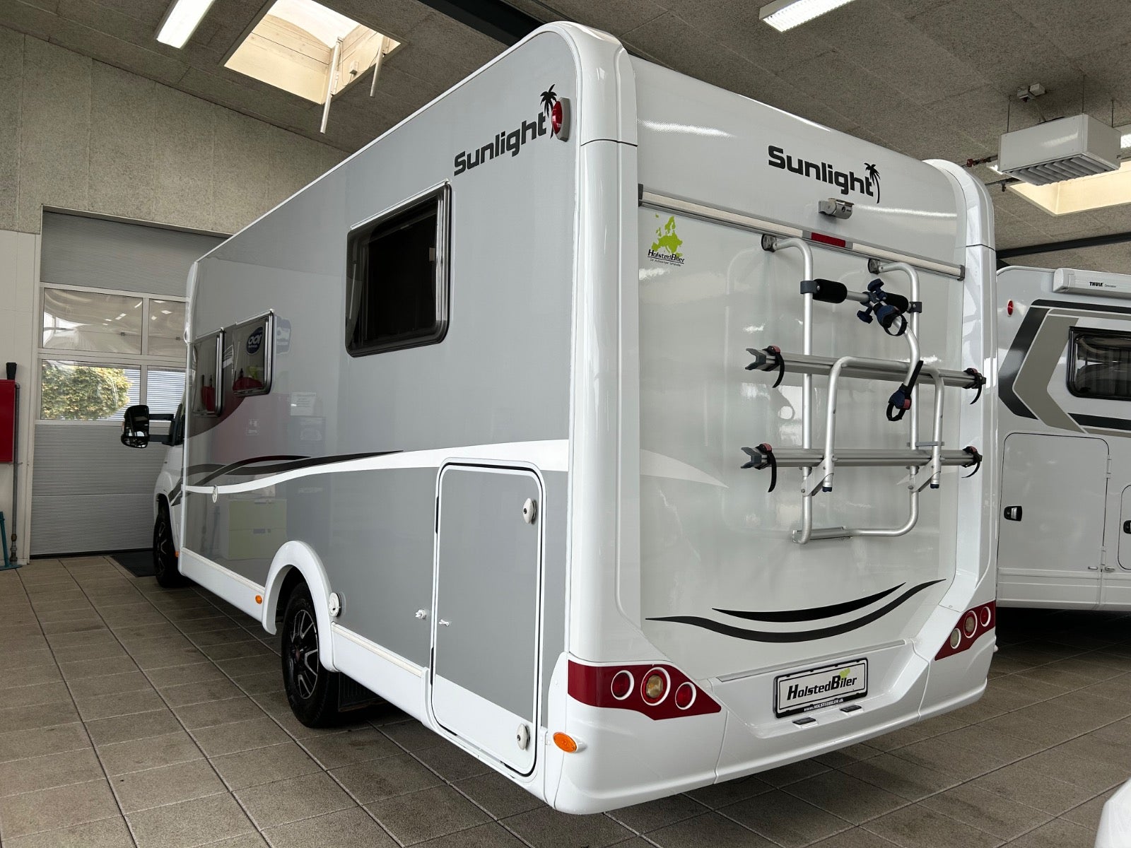 Stort soveværelse med queensbed, separat bruser og wc/håndvask. Vinkelkøkken og køl/frys med TV monteret ovenpå. Siddegruppe til 5. Markise, 2000 watt inverter, solceller, duo-gas - dvs automatisk omskiftning mellem gasflasker, kantsyet tæpper i bodel, truma comi blæsevarme, el-trin, cykelholder, kørecomputer, højdejust. forsæder, alcantaraindtræk, stofindtræk, el-sidespejle m/varme, automatgear, aircondition, fjernb. centrallås, udv. temp. måler, fartpilot, el-ruder, db. airbags, esp, bakkamera, antispinLængde 743 bredde 233 højde 291.