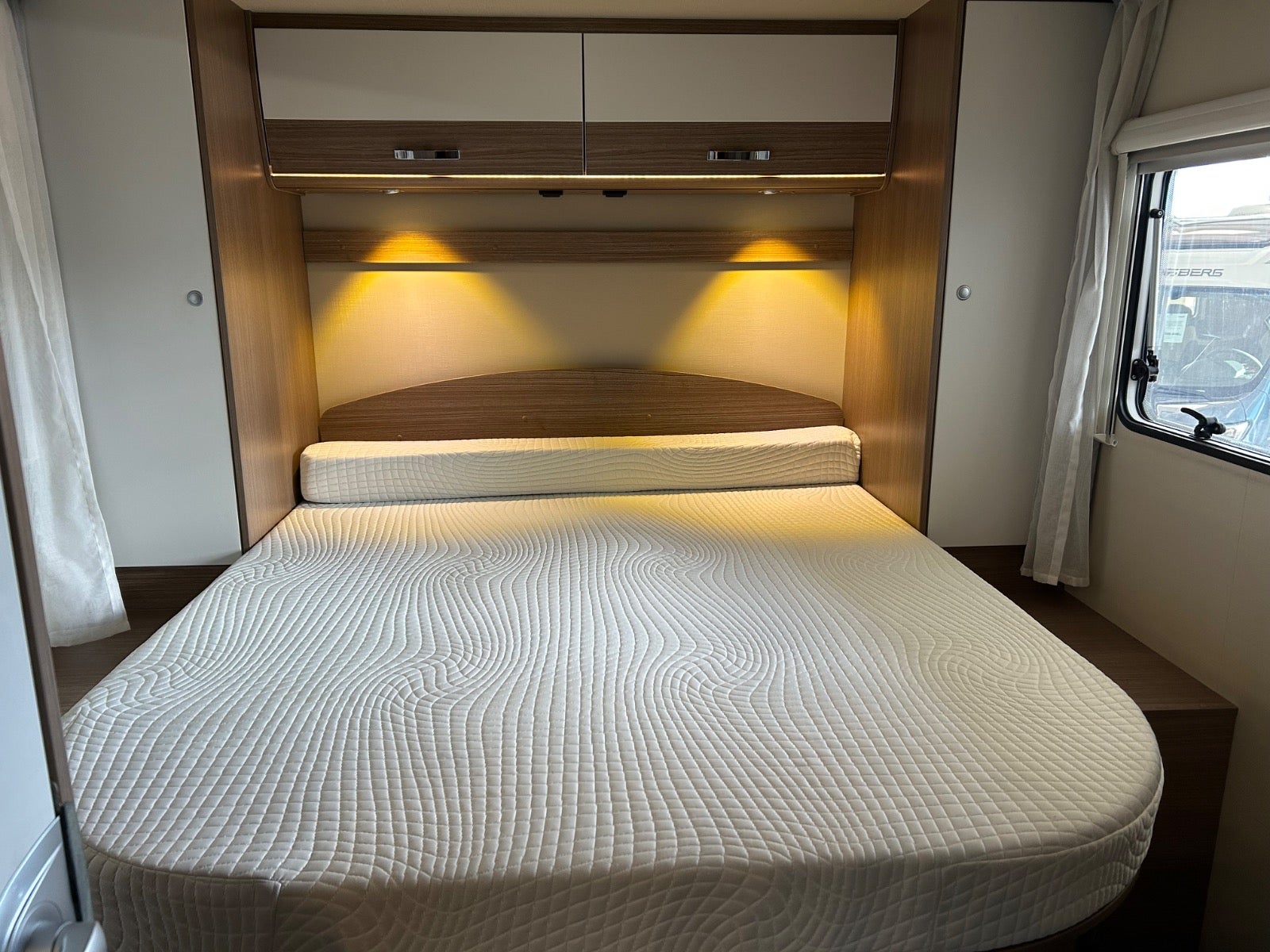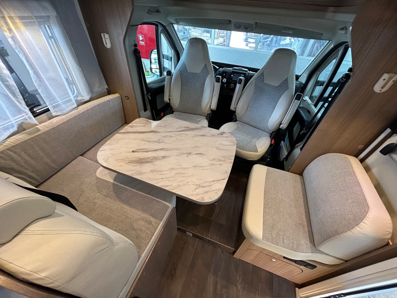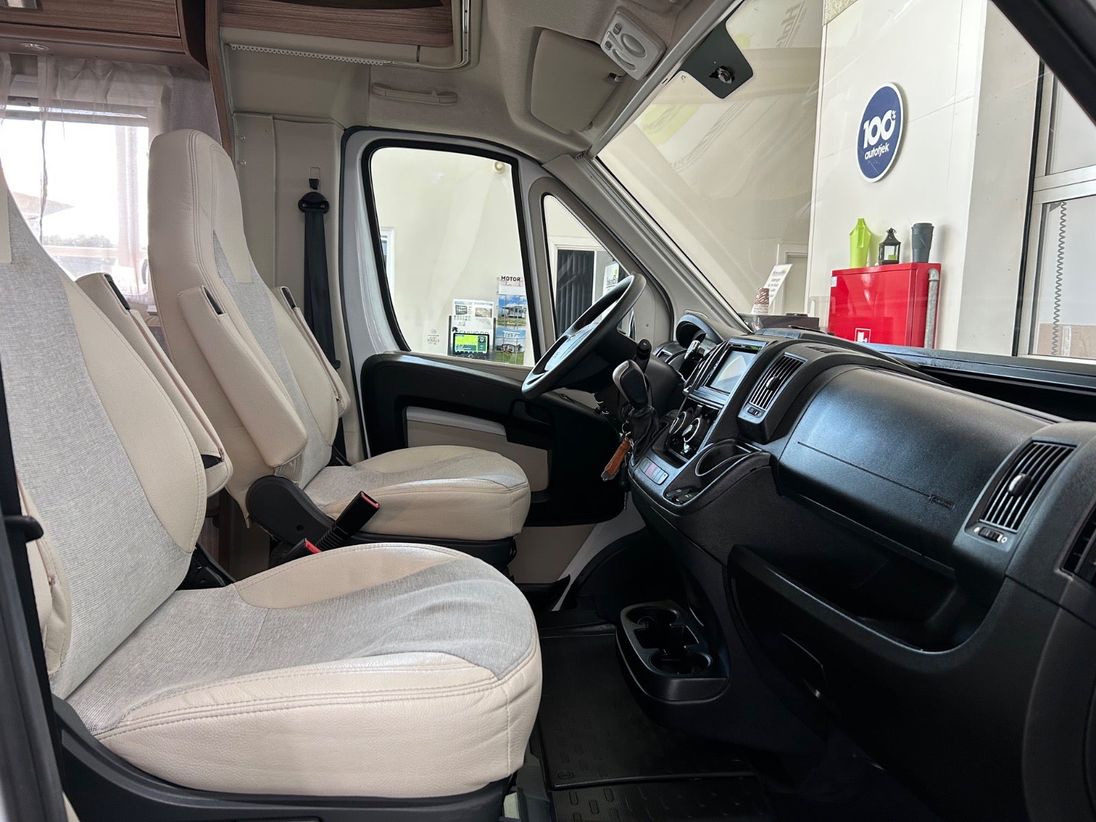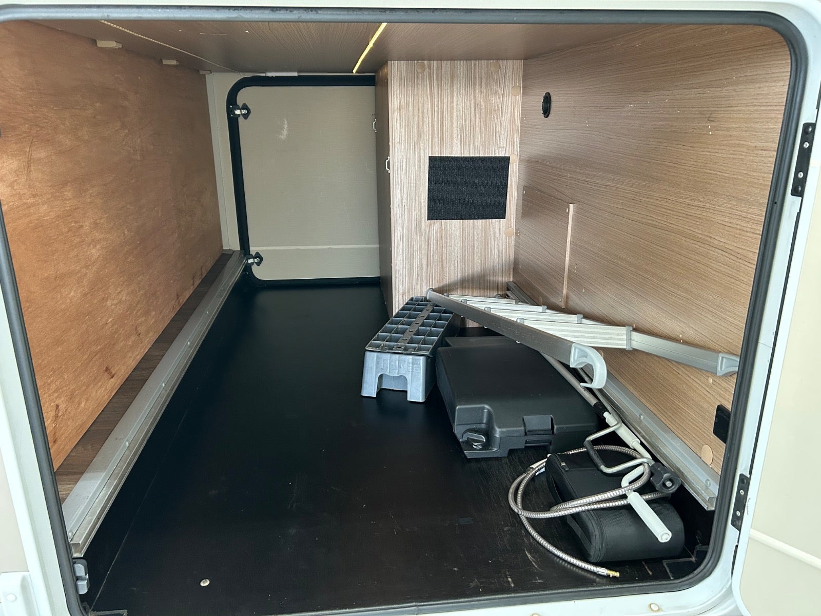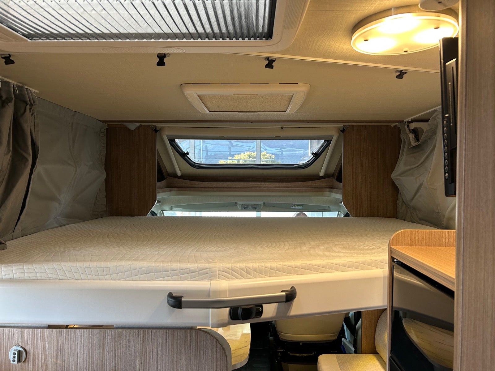Stort soveværelse med queensbed, separat bruser og wc/håndvask. Vinkelkøkken og køl/frys med TV monteret ovenpå. Siddegruppe til 5 med hæve/sænkeseng over. Udstyr f.eks. 2 store solceller, lithium batteri, inverter, gulvvarme, blæser på køleskab, Truma blæsevarme til både gas og 220 volt, ekstra dieselfyr til opvarmning, udvendig bruser, støtteben i bag, markise, el-trin, cykelholder,kørecomputer, dellæderindtræk, stofindtræk, højdejust. forsæder, integrerede rullegardiner, alufælge, el-sidespejle m/varme, automatgear, aircondition, fjernb. centrallås, udv. temp. måler, fartpilot, el-ruder, db. airbags, esp, antispin, 150 HK.