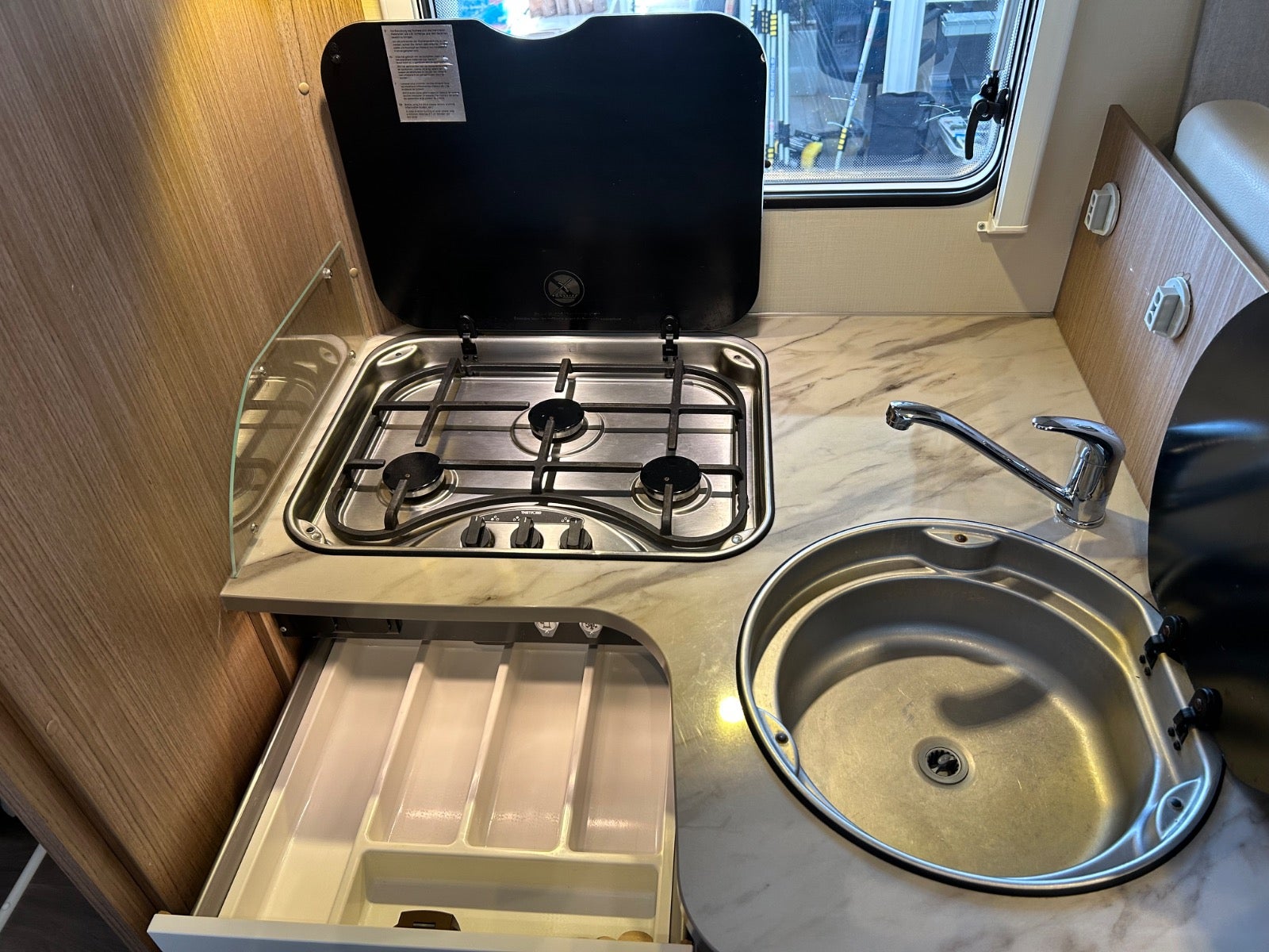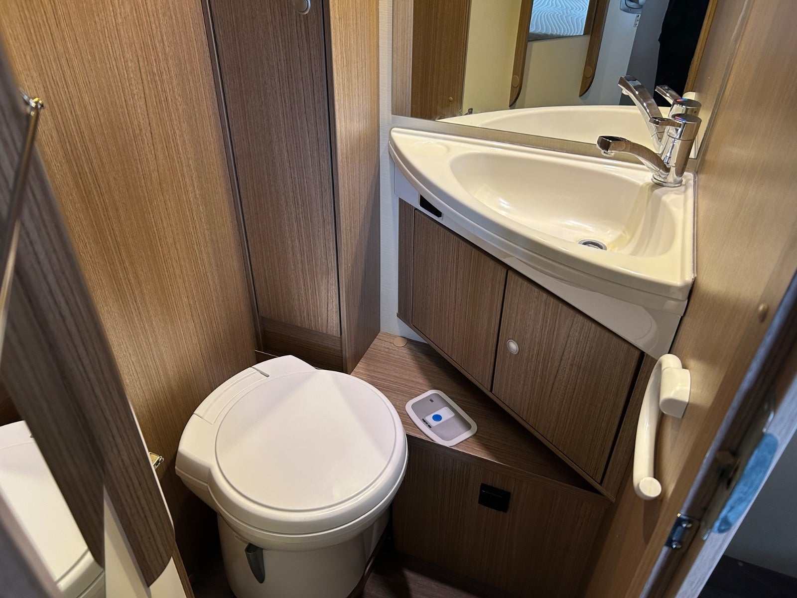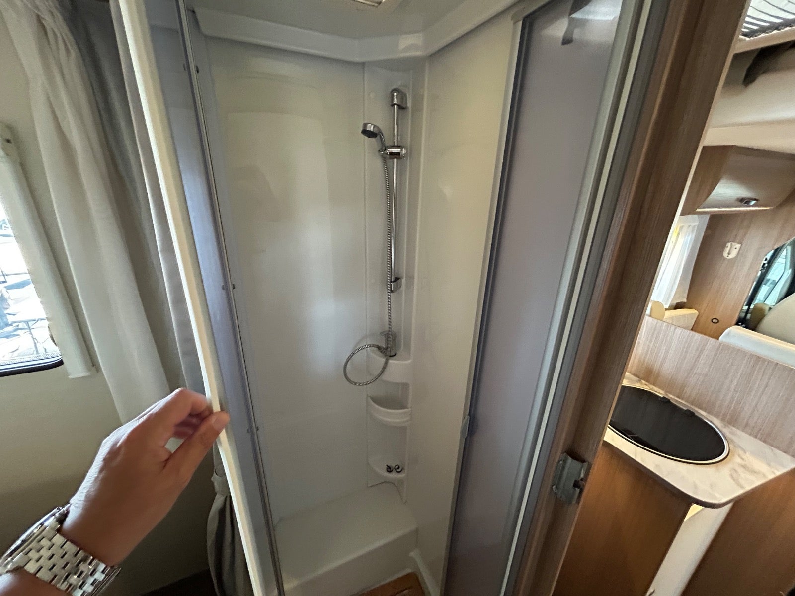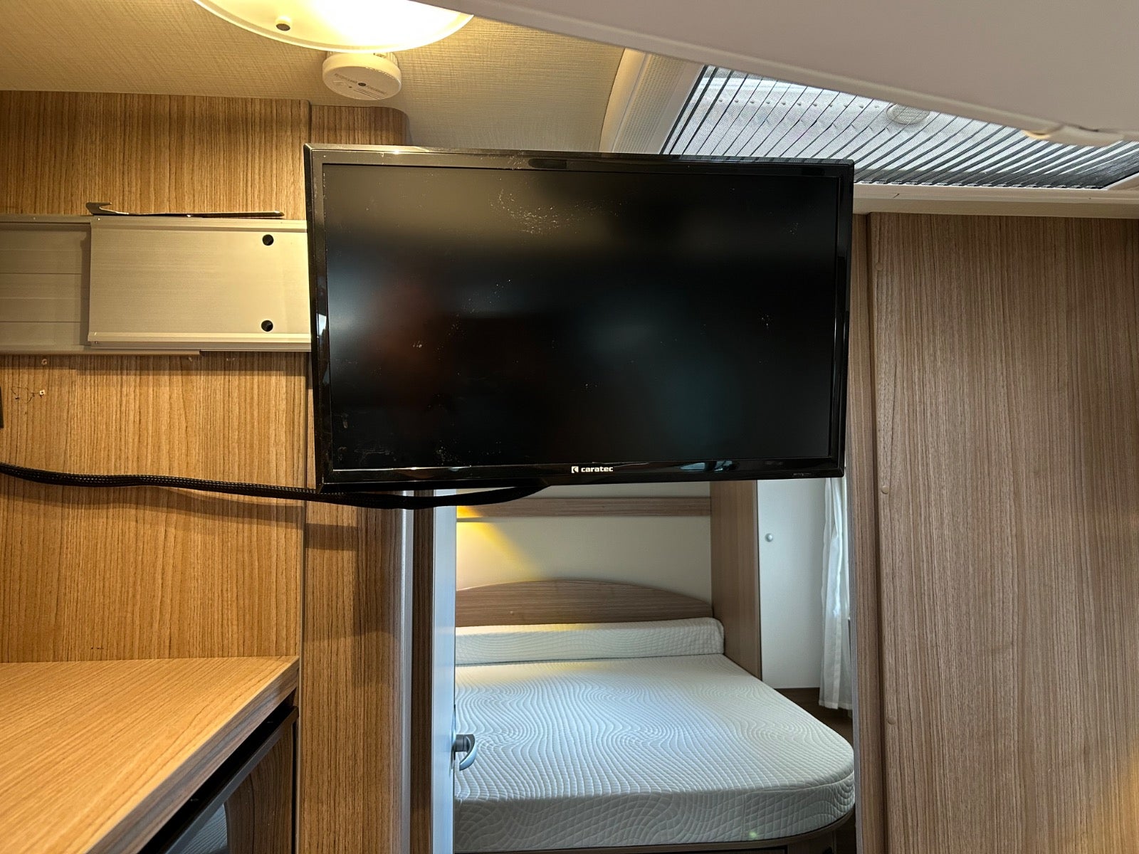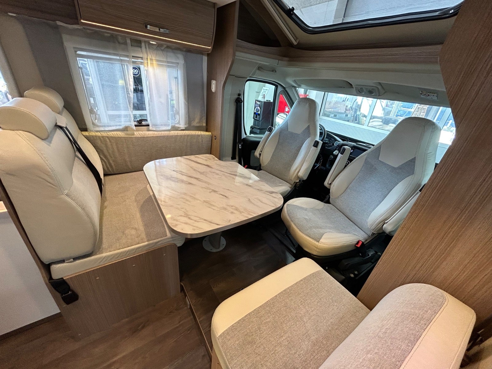 Stort soveværelse med queensbed, separat bruser og wc/håndvask. Vinkelkøkken og køl/frys med TV monteret ovenpå. Siddegruppe til 5 med hæve/sænkeseng over. Udstyr f.eks. 2 store solceller, lithium batteri, inverter, gulvvarme, blæser på køleskab, Truma blæsevarme til både gas og 220 volt, ekstra dieselfyr til opvarmning, udvendig bruser, støtteben i bag, markise, el-trin, cykelholder,kørecomputer, dellæderindtræk, stofindtræk, højdejust. forsæder, integrerede rullegardiner, alufælge, el-sidespejle m/varme, automatgear, aircondition, fjernb. centrallås, udv. temp. måler, fartpilot, el-ruder, db. airbags, esp, antispin, 150 HK.